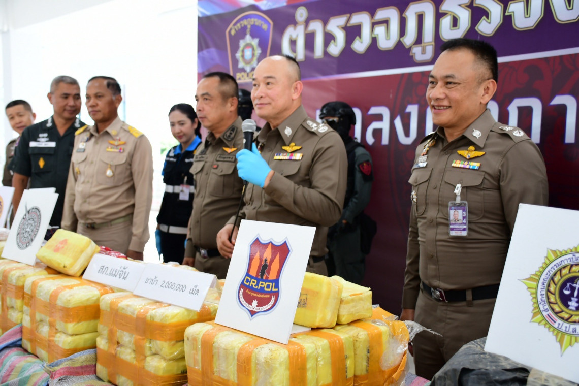 วันที่ 6 มิ.ย.2568 ผู้สื่อข่าวรายงานว่า ที่ ภ.จว.เชียงราย พล.ต.อ.ประจวบ วงศ์สุข รอง ผบ.ตร.พล.ต.ต.มานพ เสนากูล ผบก.ภ.จว.เชียงราย พร้อมผู้ที่เกี่ยวข้องร่วมแถลงข่าวคดียาเสพติดรายสำคัญจำนวน 2 ราย รายแรกเจ้าหน้าที่ตำรวจ สภ.บ้านดู่  สภ.แม่ฟ้าหลวง สภ.เมืองเชียงราย และ กก.สส.ภ. จว.เชียงราย ได้ร่วมกันจับกุมตัวนายอาโซ (สงวนนามสกุล) อายุ 26 ปี ชาว ต.แม่สลองนอก อ.แม่ฟ้าหลวง จ.เชียงราย และนายอาตือ (ไม่มีนามสกุล) พร้อมของกลางยาเสพติดประเภทยาบ้า 4,000,000 เม็ด รถยนต์ 1 คัน โทรศัพท์มือถือ 2 เครื่อง หลังจากวันที่ 31 พ.ค.ที่ผ่านมา สภ.แม่ฟ้าหลวง ได้รับแจ้งว่าจะมีการลักลอบขนยาเสพติดผ่านพื้นที่ชายแดนไทย-เมียนมา อ.แม่ฟ้าหลวง โดยใช้รถยนต์จำนวน 1 คัน ในการขนส่ง ต่อมาทราบว่ารถยนต์คันดังกล่าวได้ขนยาเสพติดไปถึงบริเวณถนนสาธารณะบ้านปางลาว หมู่ 10 ต.บ้านดู่ อ.เมืองเชียงราย จึงประสาน สภ.เมืองเชียงราย และ กก.สส.ภ.จว. เชียงราย ให้ทำการสกัดกั้น