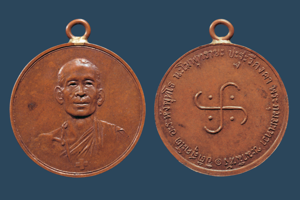 1. พุทธลักษณะเป็นเหรียญกลมแบบหูเชื่อม ขอบเหรียญด้านหน้ายกเป็นสองชั้น ชั้นนอกเป็นเส้นหนา ชั้นในเป็นเส้นเล็กเรียวเหมือนเส้นลวด