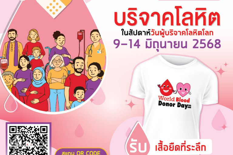 ศูนย์บริการโลหิตแห่งชาติ สภากาชาดไทย ชวนคนไทยรวมพลังแห่งการให้ บริจาคโลหิต เนื่องในวัน ผู้บริจาคโลหิตโลก (World Blood Donor Day) 14 มิถุนายน ภายใต้แนวคิด “ให้โลหิต ให้ความหวัง ให้ชีวิต” ระหว่างวันที่ 9-14 มิถุนายน 2568 ณ ศูนย์บริการโลหิตแห่งชาติ หน่วยรับบริจาคโลหิตประจำที่ 7 แห่ง โรงพยาบาลสาขาบริการโลหิตแห่งชาติ 8 แห่งในกรุงเทพฯ และภาคบริการโลหิตแห่งชาติ 12 แห่ง ทั่วประเทศ รับเสื้อยืด “World Blood Donor Day 14th JUNE” เป็นที่ระลึกแทนคำขอบคุณ