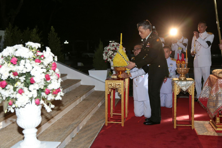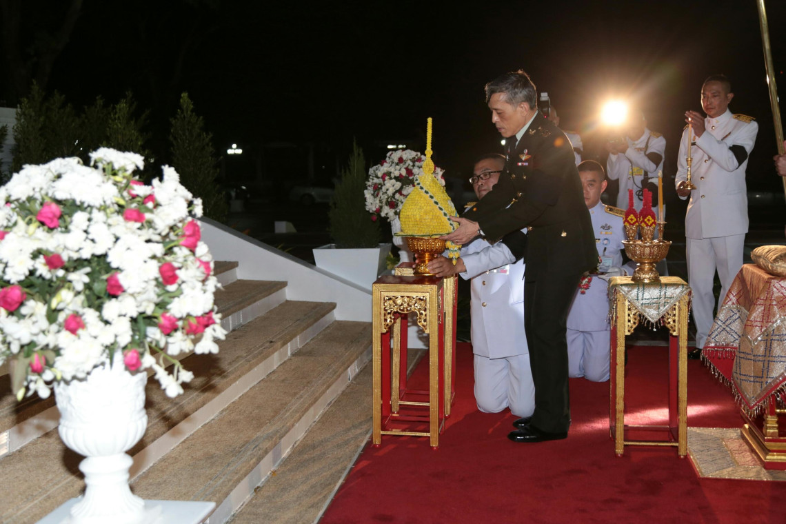 พร้อมกันนี้เสด็จพระราชดำเนินยังพระบรมราชานุสาวรีย์ พระบาทสมเด็จพระจุลจอมเกล้าเจ้าอยู่หัว ทรงวางพานพุ่ม ทรงจุดธูปเทียนเครื่องทองน้อยถวายราชสักการะพระบรมราชานุสาวรีย์ พระบาทสมเด็จพระจุลจอมเกล้าเจ้าอยู่หัว ทรงกราบ/ เสด็จพระราชดำเนินเข้าสู่พลับพลาพิธี ทรงจุดธูปเทียนเครื่องนมัสการบูชาพระพุทธนวราชบพิตร ทรงกราบ ทรงศีล