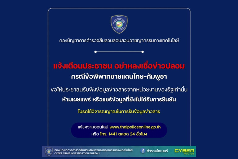 #ข่าวปลอม #ตำรวจไซเบอร์ #ชายแดนไทยกัมพูชา #CyberPolice #ระวังข่าวลวง