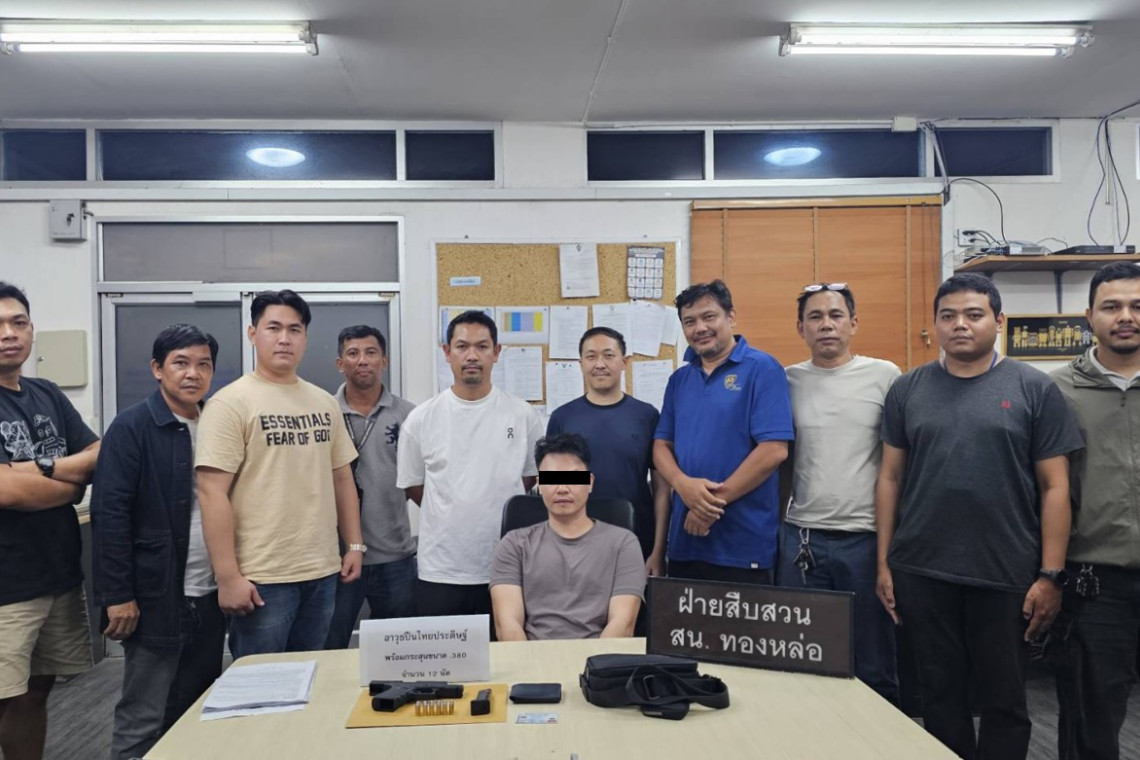 เมื่อวันที่ 7 มิ.ย. พล.ต.ท.สยาม บุญสม ผบช.น. พล.ต.ต.วิทวัฒน์ ชินคำ ผบก.น.5 พ.ต.อ.รัฐธนนท์ เอกฐิติกุลพัทธ์ ผกก.สน.ทองหล่อ พ.ต.ท.อัครพล ธนธรรม รอง ผกก.สส.สน.ทองหล่อ สั่งการให้ พ.ต.ต.พงษ์สันต์ วิยะรันดร์ สว.สส.สน.ทองหล่อ พร้อมกำลังเจ้าหน้าที่ตำรวจฝ่ายสืบสวน สน.ทองหล่อ จับกุมนายอรรคพล อายุ 37 ปี พร้อมของกลางบัตรประจำตัวประชาชนของ ผู้เสียหาย กระเป๋าสตางค์สีกรม จำนวน 1 ใบ อาวุธปืนแบลงค์กัน KUZEY-GN19 แปลงสภาพลำกล้อง จำนวน 1 กระบอก แม็กกาซีน จำนวน 1 แม็ก พร้อมกระสุนปืน ขนาด 0.380 บรรจุอยู่จำนวน 12 นัด กระเป๋าสะพายข้างสีดำ ยี่ห้อ MC JEANS จำนวน 1 ใบ จับกุมได้บริเวณลานจอดรถด้านหน้า สน.ทองหล่อ แขวงคลองตันเหนือ เขตวัฒนา กรุงเทพมหานคร เมื่อวันที่ 6 มิ.ย. 2568 เวลาประมาณ 16.07 น.ที่ผ่านมา