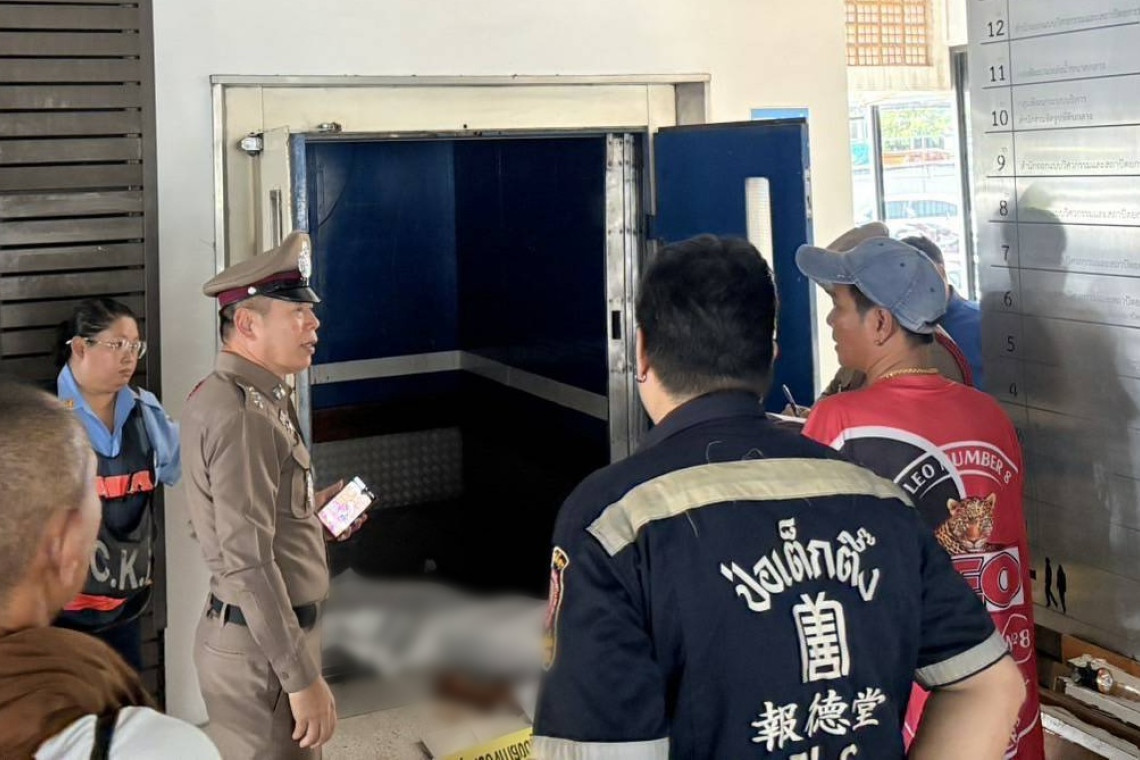 จากการสอบถามพยานแจ้งว่า ขณะที่นั่งเข้าเวรประจำวันอยู่ ตนได้ยินเสียงเหมือนมีหลังคาตก จึงได้เดินไปตรวจสอบ โดยรอบบริเวณซึ่งไม่พบอะไรผิดปกติ จากนั้นจึงได้ลองไปเปิดดูลิฟท์ ขนส่ง พบเป็นชายนอนอยู่ภายในลิฟท์ จึงได้แจ้งไปยังเจ้าหน้าที่ตำรวจ และกู้ภัย