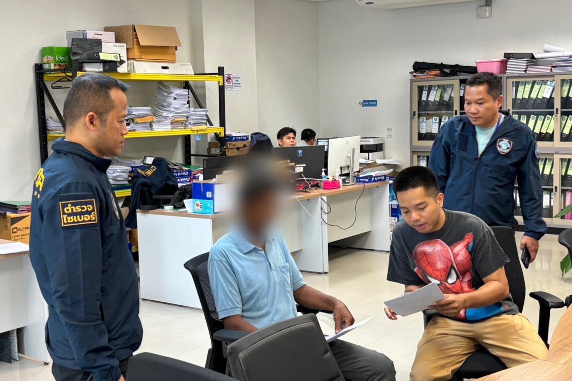 วันที่ 9 มิ.ย.68 ที่ บก.สอท.2 พล.ต.ท.ไตรรงค์ ผิวพรรณ ผบช.สอท., พล.ต.ต.อรรถสิทธิ์ สุดสงวน รอง ผบช.สอท., พล.ต.ต.วิวัฒน์ คำชำนาญ รอง ผบช.สอท., พล.ต.ต.ทินกร รังมาตย์ รอง ผบช.สอท., พล.ต.ต.ศรายุทธ จุณณวัตต์ ผบก.สอท.2, พล.ต.ต.ชัชปัณฑกาณฑ์ คล้ายคลึง ผบก.สอท.3 และ พล.ต.ต.ศิลา กาญจน์รักษ์ ผบก.ตอท. พร้อมเจ้าหน้าที่ที่เกี่ยวข้องร่วมแถลงข่าว “MONEY CASH BACK ปิดบัญชี ตามล่าม้าคว้าเงินคืน EP.9” ตำรวจไซเบอร์รวบเครือข่ายหลอกร้านรับเหมาโอนเงินมัดจำ ตามอายัดทันทั้ง 2 แสน นำคืนผู้เสียหาย