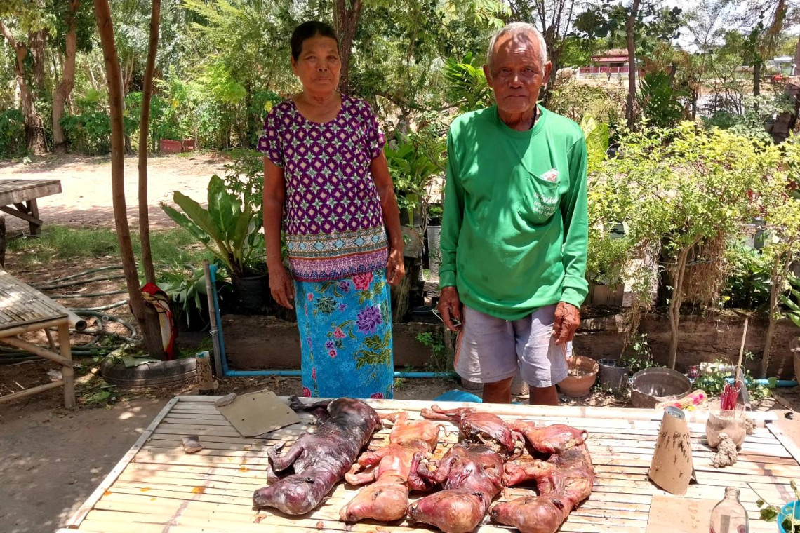 และในช่วงสายวันนี้ (9 มิ.ย.68) ผู้สื่อข่าวได้ลงพื้นที่ไปยังบ้านหลังดังกล่าวอีกครั้ง พบซากลูกวัว 4 ตัว เจ้าของได้นำมาไว้บนแคร่ไม้ไผ่ และตาดแดด พร้อมกับสุมไฟให้อุ่นๆใต้แคร่ เพื่อไล่ความชื้น และเพื่อตากให้ซากลูกวัวแห้ง ป้องกันไม่ให้เน่า และจะเก็บไว้ดูและบูชาต่อไป