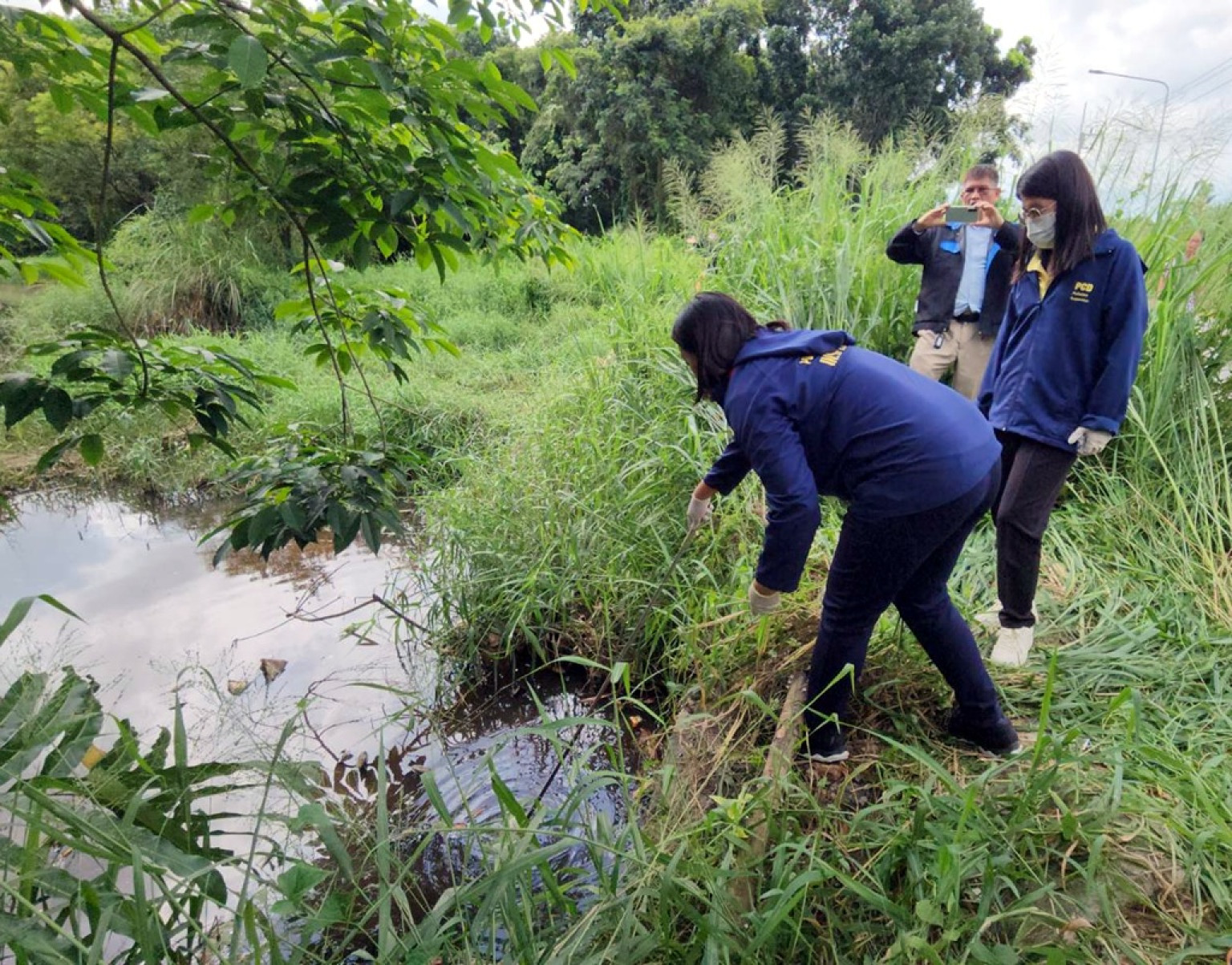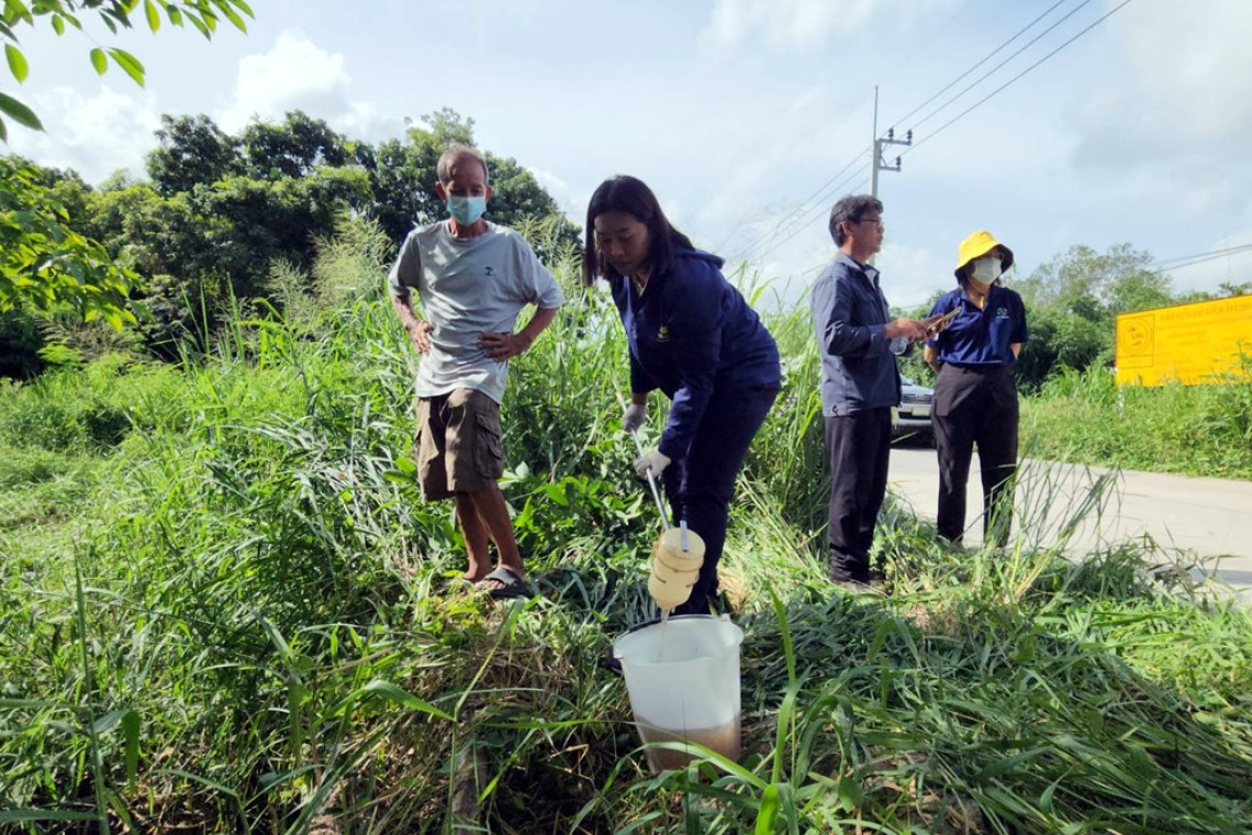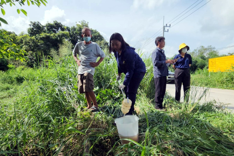ผอ.ศูนย์ดำรงธรรมระยอง พร้อมเจ้าหน้าที่ศูนย์ควบคุมมลพิษ จ.ระยอง และ ทสจ.ระยอง ลงพื้นที่เก็บตัวอย่างน้ำเสียสีดำคล้ำ หลังชาวบ้านร้องพบน้ำเสียมีต้นทางมาจากศูนย์กำจัดขยะครบวงจร