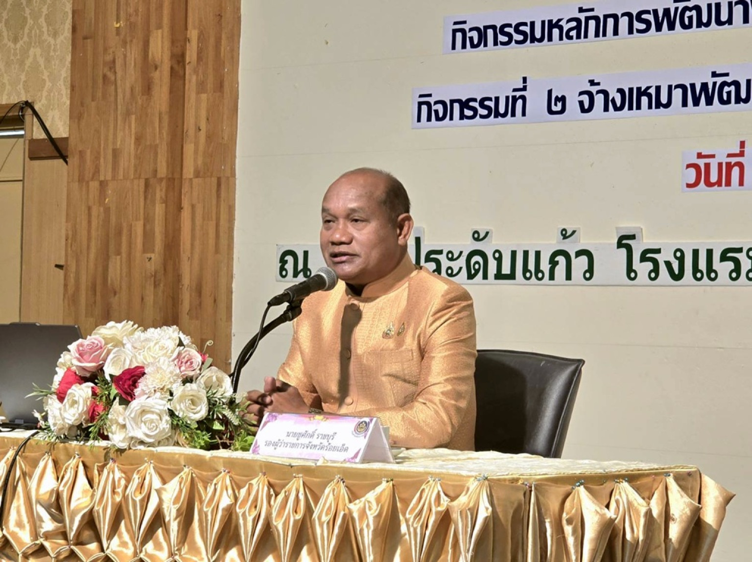 วันที่ 10 มิ.ย.68 นายชัชวาลย์ เบญจสิริวงศ์ ผู้ว่าราชการจังหวัดร้อยเอ็ด มอบหมายให้นายชูศักดิ์ ราชบุรี รองผู้ว่าราชการจังหวัดร้อยเอ็ด เป็นประธานเปิดการอบรมโครงการเสริมสร้างขีดความสามารถทางการแข่งขัน ด้านเศรษฐกิจสร้างสรรค์ การท่องเที่ยว การค้า การลงทุน และการบริการ กิจกรรมหลัก : การพัฒนาผลิตภัณฑ์ OTOP เป็นของฝาก ของที่ระลึก โดยมีนางราณี วงศ์ลุน พัฒนาการจังหวัดร้อยเอ็ด เจ้าหน้าที่ คณะวิทยากร ผู้ประกอบการและกลุ่มวิสาหกิจชุมชน เข้าร่วมพิธี ผู้เข้าอบรมประกอบด้วย กลุ่มวิสาหกิจชุมชน และผู้ประกอบการ OTOP ระดับ 3 - 5 ดาว ในพื้นที่ 20 อำเภอ ๆ ละ 1 กลุ่ม รวม 40 คน ณ ห้องประดับแก้ว โรงแรมเพชรรัชต์การ์เด้นร้อยเอ็ด