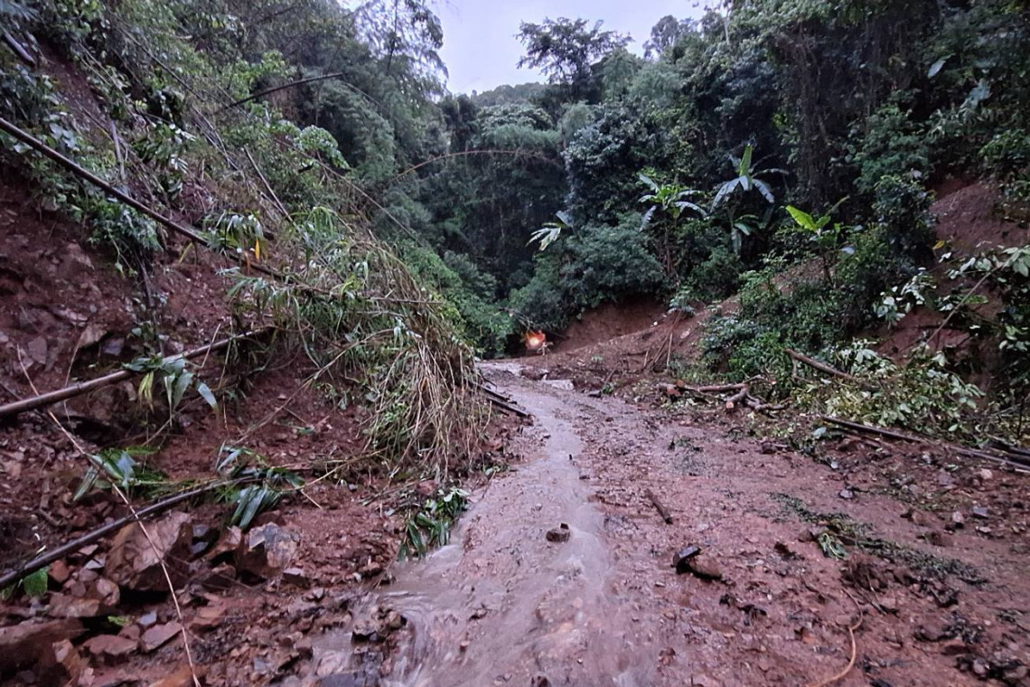 ทั้งนี้รับแจ้งว่าเนื่องจากฝนตกหนักติดต่อกันในพื้นที่ตั้งแต่ช่วง 15.40 น. ทำให้ดินสไลด์ในพื้นที่ขวางเส้นทางจราจรไม่สามารถใช้สัญจรเส้นทางเข้าออกหมู่บ้าน และน้ำป่าไหลหลากทำให้ฝายเกษตรที่เตรียมใช้ไว้ทำนาได้รับความเสียหาย