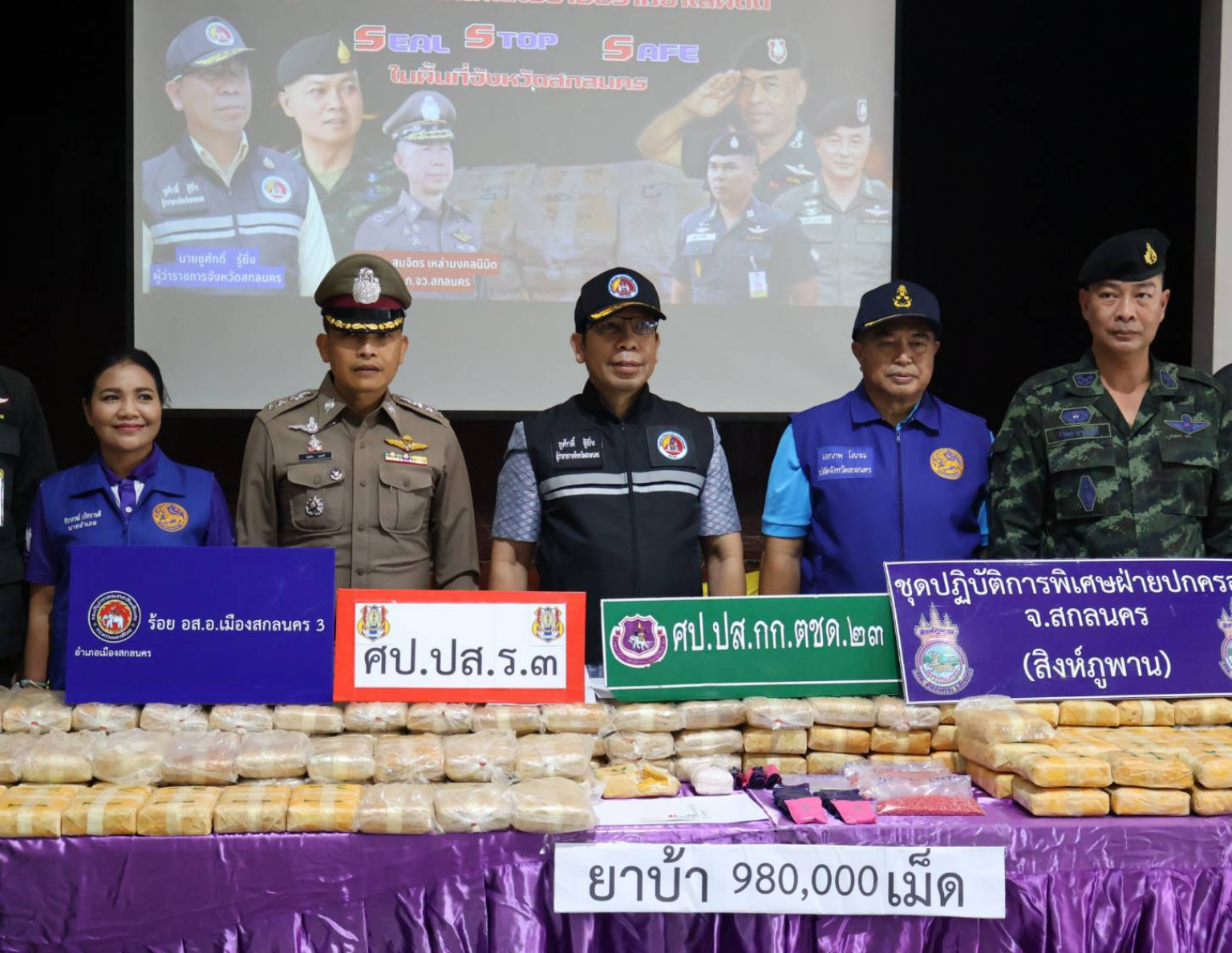 นายชูศักดิ์ รู้ยิ่ง ผู้ว่าราชการจังหวัดสกลนคร ได้กล่าวว่า ตามแนวทางแผนปฏิบัติการป้องกันและแก้ไขปัญหายาเสพติดประจำปีงบประมาณ พ.ศ.2568 "สกลนครโมเดล" จังหวัดสกลนคร เป็น 1 ใน 10 จังหวัดนำร่องพื้นที่ต้นแบบในการแก้ไขปัญหายาเสพติดในพื้นที่ มุ่งเน้นการบูรณาการร่วมกันทั้ง 18 อำเภอ ทั้งด้านการป้องกัน ปราบปราม บำบัดรักษา และสกัดกั้นพื้นที่ตามแนวชายแดน ซึ่งการจับกุมในครั้งนี้ต้องขอขอบคุณร่วมมือร่วมใจของทุกภาคส่วน จนสามารถจับกุมตรวจยึดยาเสพติดว่า 980,000 เม็ด ซึ่งหลังจากนี้ก็จะดำเนินการสืบสวนขยายผลต่อไป โดยตั้งเป้าหมายให้จังหวัดสกลนคร เป็นพื้นที่สีขาว ปลอดยาเสพติดอย่างเด็ดขาด ตามนโยบายการป้องกัน สกัดกั้นและปราบปรามยาเสพติดในพื้นที่ชายแดน Seal Stop Safe ของรัฐบาล อนึ่ง พ.อ.ศิวดล ยาคล้าย ผบ.ร.3 ผบ.บก.ส่วนควบคุมที่ 1 กกล.สุรศักดิ์มนตรี กล่าวว่า หารปราบปรามยาเสพติดที่ทะลักเข้าไทยในขณะนี้ เปรียบเทียบกับปีที่ผ่านมาสูงขึ้นเป็น 100 เท่า จากสถิติจับกุมแถบชายแดนตั้งแต่ตุลาคม 2567 จนถึงปัจจุบัน ภาคอีสานตอนบน จ.เลย จ.หนองคาย จ.บึงกาฬ จ.นครพนม จ.มุกดาหาร และ จ.อุบลราชธานี สามารถสกัดกั้นยาเสพติด เป็นยาบ้า 123 ล้านเม็ด ยาไอซ์ 6,000 ก.ก.ซึ่งสูงมาก การจับกุมเป็นผลมาจากหลายภาคส่วนร่วมมือกัน ตลอดจนพี่น้องประชาชนแจ้งเบาะแสจึงทำให้จับกุมได้