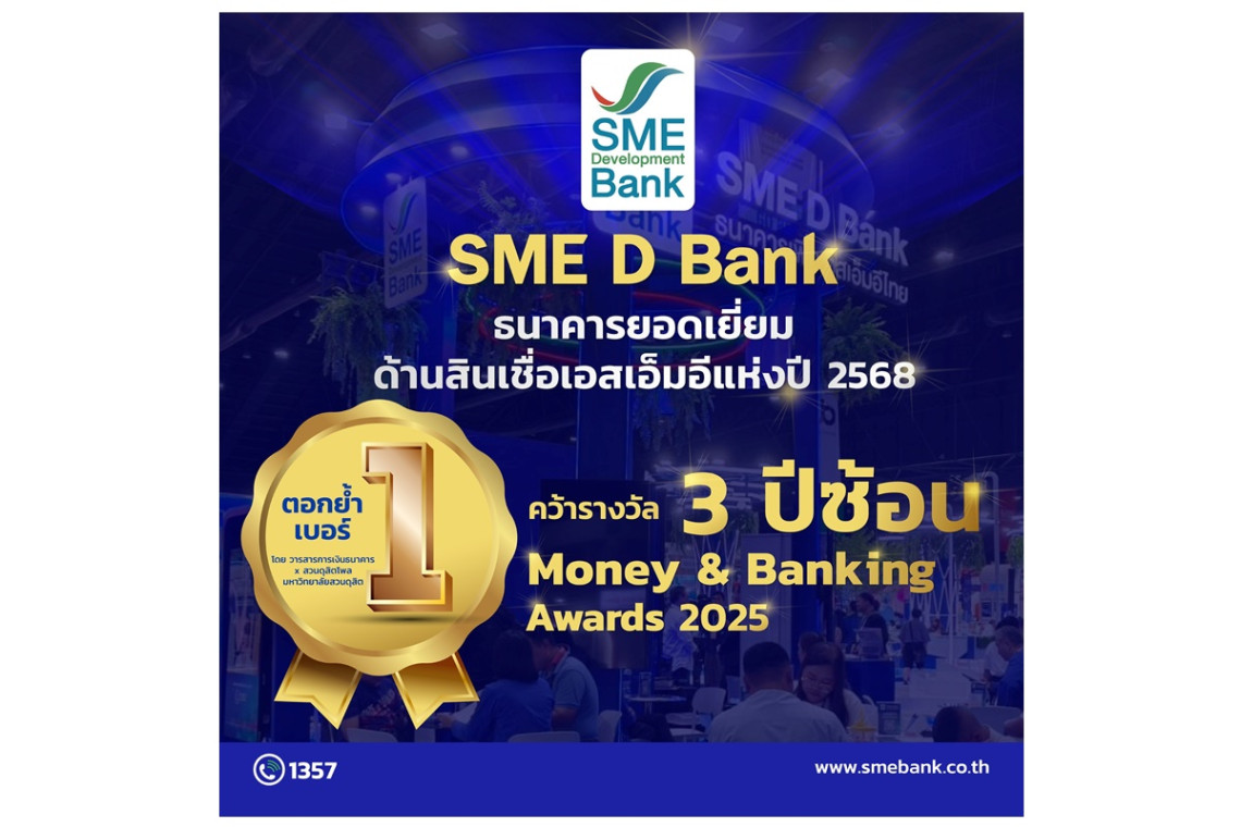ธนาคารพัฒนาวิสาหกิจขนาดกลางและขนาดย่อมแห่งประเทศไทย (ธพว.) หรือ SME D Bank คว้ารางวัล Money & Banking Awards 2025 ประเภท “ธนาคารยอดเยี่ยมด้านสินเชื่อเอสเอ็มอีแห่งปี 2568” (Best Service Provider of the Year 2025 – SME Loan) จากวารสารการเงินธนาคาร ร่วมกับ สวนดุสิตโพล ที่ทำการสำรวจความคิดเห็นผู้เข้าชมงาน “มหกรรมการเงิน Money Expo” ทั้งในกรุงเทพฯ และภูมิภาค ระหว่างปี 2567-2568 รวม 7 งาน ซึ่งมีสถาบันการเงินต่างๆมาออกบูธให้บริการสินเชื่อเอสเอ็มอีในงานจำนวนมาก โดย SME D Bank ได้รับผลสำรวจเป็นอันดับหนึ่งของการเป็นธนาคารที่มีบริการยอดเยี่ยมด้านสินเชื่อเอสเอ็มอี นับเป็นปีที่ 3 ติดต่อกัน (2566-2568)