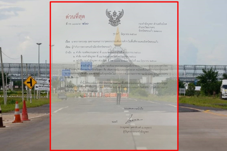 วันที่ 17 มิ.ย.68 พล.ต.เบญจพล เดชาติวงศ์ ณ อยุธยา ผู้บัญชาการกองกำลังบูรพา ลงนามในหนังสือ เรื่อง มาตรการควบคุม จุดผ่านแดนถาวร/จุดผ่อนปรนเพื่อการค้าฯ ในพื้นที่ชายแดนจังหวัดสระแก้ว