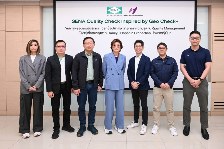 เมื่อความใส่ใจในรายละเอียด คือรากฐานของคุณภาพที่ยั่งยืน บริษัท เสนาดีเวลลอปเม้นท์ จำกัด (มหาชน) เดินหน้าพัฒนามาตรฐานโครงการด้วยองค์ความรู้ระดับโลก จัดอบรม “SENA Quality Check Inspired by Geo Check+” เพื่อยกระดับมาตรฐานการพัฒนาโครงการอย่างเป็นระบบ โดยนำองค์ความรู้จากพันธมิตรญี่ปุ่น ฮันคิว ฮันชิน พร็อพเพอร์ตี้ส์ (HHP) มาประยุกต์ใช้ผ่านการเรียนรู้เชิงลึกที่สำนักงานใหญ่และการลงพื้นที่โครงการ นำโดย ผศ.ดร.เกษรา ธัญลักษณ์ภาคย์ ร่วมกับมิสเตอร์ ทาเคชิ สึจิ,  มิสเตอร์ เคจิ ฮารากาว่า และทีมจาก ฮันคิว ฮันชิน พร็อพเพอร์ตี้ส์ ประเทศไทย พร้อมได้รับเกียรติจาก ทีมฝ่ายบริหารคุณภาพ (Quality Management) ของ HHP ซึ่งเดินทางมาถ่ายทอดองค์ความรู้แนวคิด “Geo Check+” กระบวนการควบคุมคุณภาพ 5 ขั้นตอน ครอบคลุมตั้งแต่การออกแบบ วางแผนก่อสร้าง ควบคุมงาน ไปจนถึงการตรวจสอบก่อนส่งมอบ พร้อมเสริมแนวทางด้านความปลอดภัยและการรับมือภัยพิบัติ เพื่อยกระดับมาตรฐานที่อยู่อาศัยไทยให้มั่นใจได้ทั้งคุณภาพและความปลอดภัยในทุกโครงการ