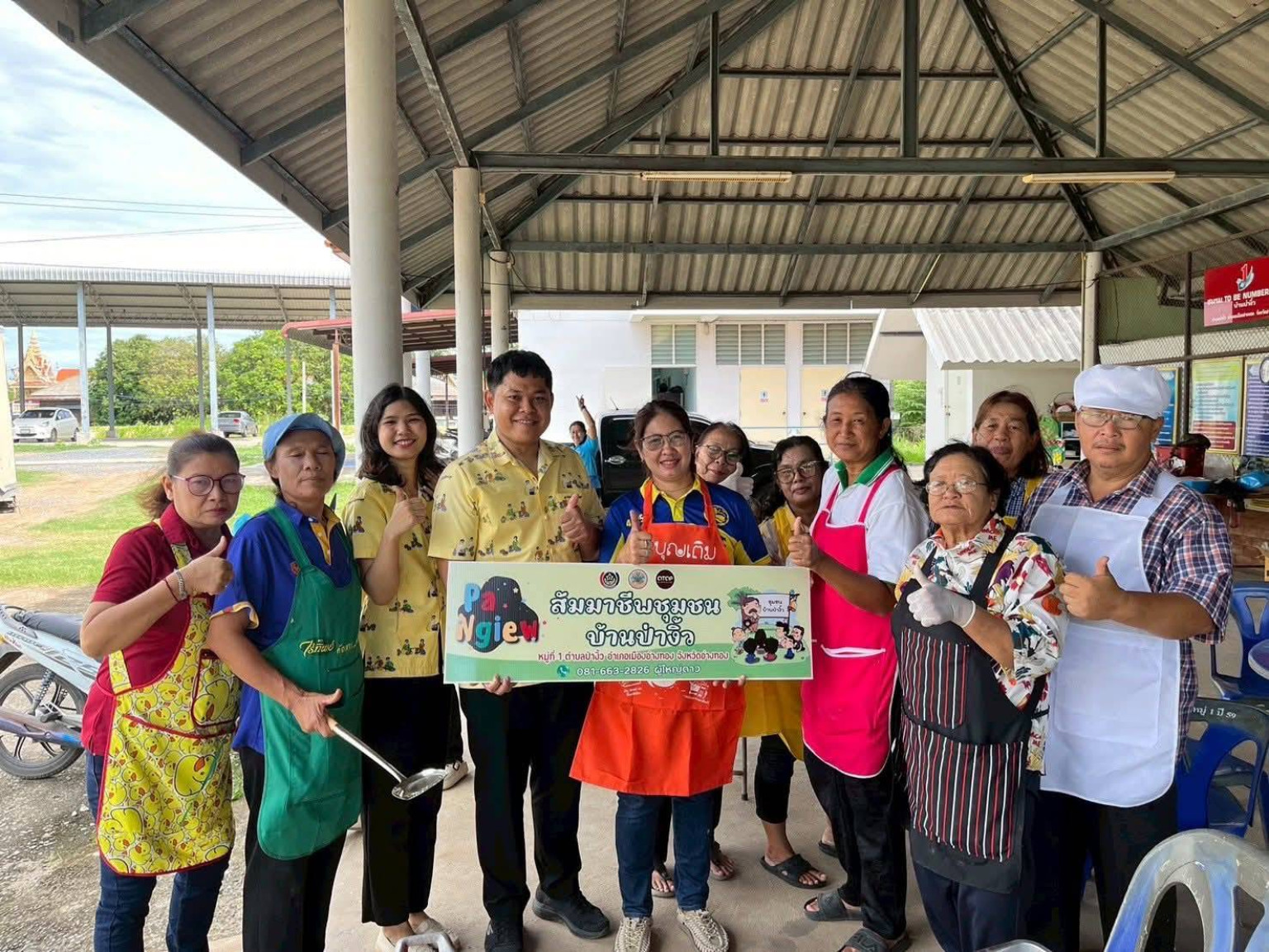 โดยวันนี้ทางสมาชิกกลุ่มอาชีพป่างิ้ว หมู่ที่ 1 ตำบลป่างิ้ว เข้าร่วมโครงการกิจกรรมพัฒนาต่อยอดกลุ่มอาชีพ จำนวน 13 คน ณ ศาลาเอนกประสงค์ หมู่ที่ 1 ตำบลป่างิ้ว อำเภอเมืองอ่างทอง ร่วมกันจัดตั้งกลุ่มอาชีพ ตามหลัก 5 ก. โดยใช้ชื่อกลุ่มว่า “PANGIEW ป่างิ้ว หมู่ที่ 1 ” ผลิตภัณฑ์กลุ่มได้แก่ ครองแครง กรอบเค็ม และได้แนะนำส่งเสริมการต่อยอดอาชีพและช่องทางการจำหน่ายให้แก่กลุ่มต่อไปโดยการพัฒนาบรรจุภัณฑ์ และส่งเสริมเทคนิคการตลาด