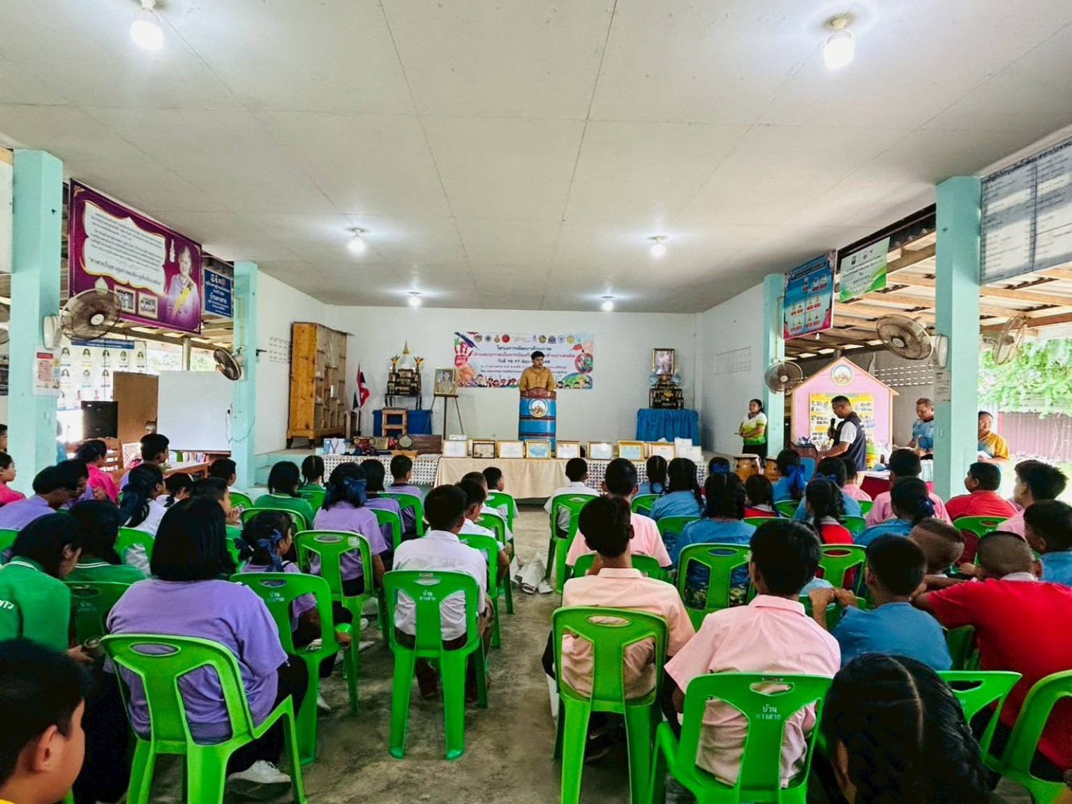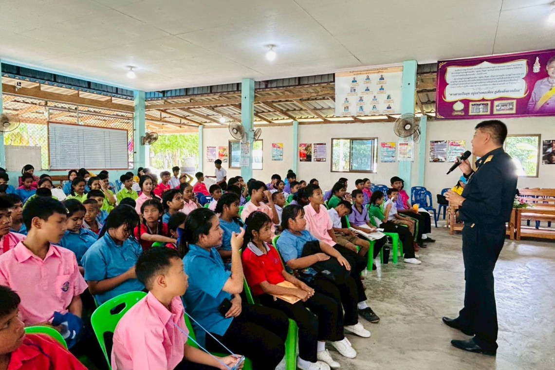 วันที่ 17 มิถุนายน2568 ที่บ้านทางสาย ต.ธงชัย อ.บางสะพาน จ.ประจวบคีรีขันธ์ นายฉัตรินสุวรรณหงส์ พัฒนาการอำเภอบางสะพานเป็นประธานเปิดโครงการพัฒนาศักยภาพเด็กและเยาวชนในการป้องกันและต่อต้านยาเสพติดโดยมีนายวัชรินทร์ จันทร์เดช ประธานเครือข่ายกองทุนแม่ของแผ่นดินจังหวัดประจวบคีรีขันธ์ พร้อมด้วย นายทวีศักดิ์ จุลเนียม บุคคลต้นแบบ หมู่บ้านกองทุนแม่ของแผ่นดินและรองประธานฯ เครือข่ายกองทุนแม่ของแผ่นดินจังหวัดประจวบๆ นายอุดรรักษ์ คำลุนนายกสมาคมผู้บริหารศึกษาและข้าราชการครูอำเภอ นายฉัตรทวัส คงสมัครผู้ใหญ่บ้านหมู่ 9 ทางสาย รองประธานเครือข่ายกองทุนแม่อำเภอบางสะพานพร้อมเครือข่ายเสมารักษ์อำเภอบางสะพาน ร่วมสนับสนุน“โครงการพัฒนาศักยภาพเครือข่ายเด็กและเยาวชนหมู่บ้านกองทุนแม่ของแผ่นดินบางสะพานต้านภัยยาเสพติด