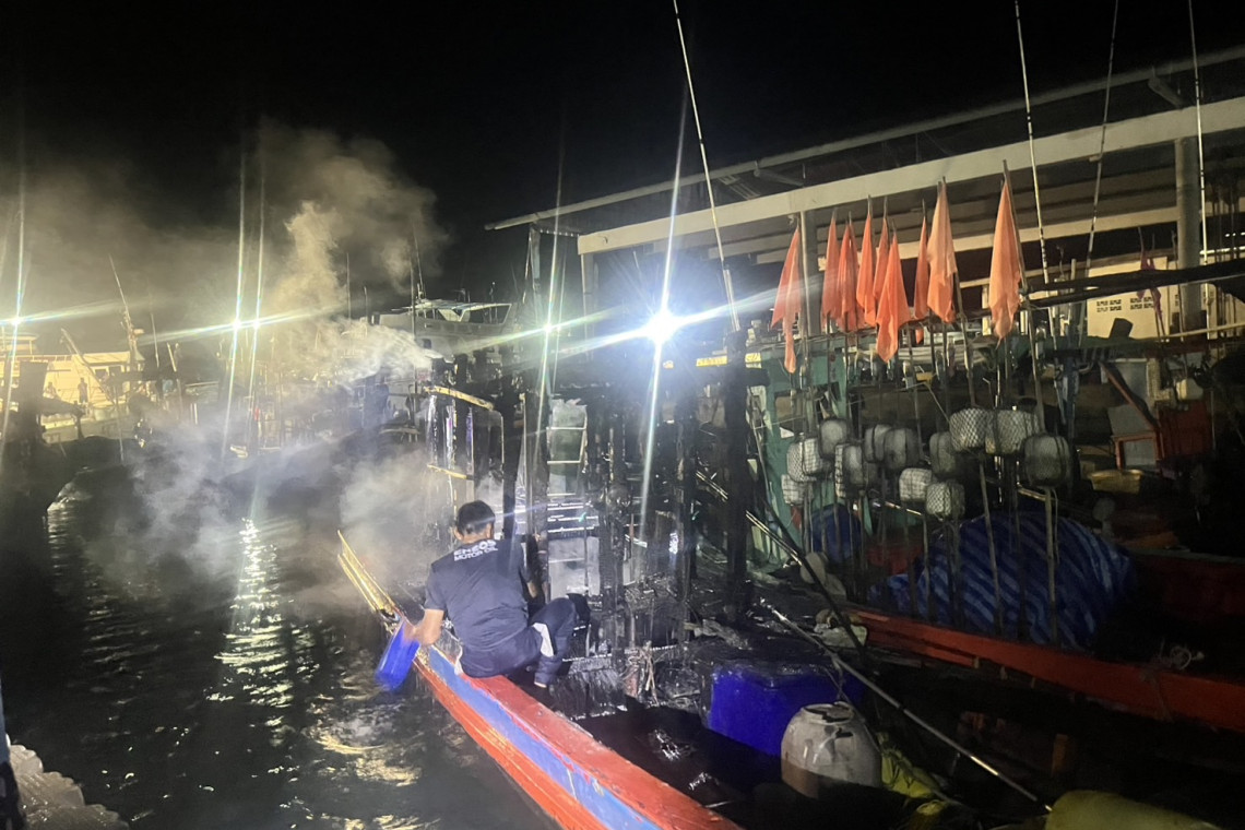 พังงา เกิดเหตุไฟไหม้เรือประมงพื้นบ้านขณะจอดหลบคลื่นลมท่าเรือบ้านทับละมุ เสียหาย 3 ลำ คาดไฟฟ้าลัดวงจรเป็นเหตุ