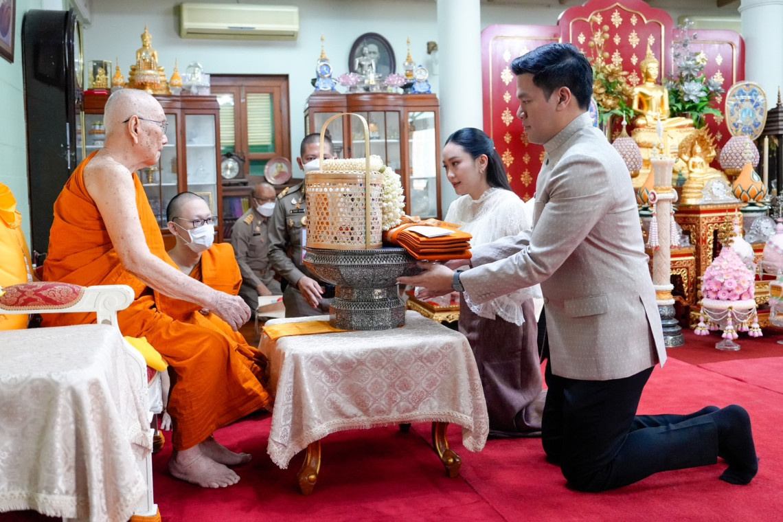 นายกฯ และคู่สมรสเดินทางมาถึงวัดราชบพิธสถิตมหาสีมาราม ได้วางพวงมาลัยถวายสักการะพระบรมราชานุสาวรีย์พระบาทสมเด็จพระจุลจอมเกล้าเจ้าอยู่หัว บริเวณข้างอุโบสถ เมื่อแล้วเสร็จ เดินทางไปยังอาคารสัมฤทธิ์วิทยากรเพื่อกราบสักการะสมเด็จพระมหาวีรวงศ์ เลขานุการสมเด็จพระสังฆราช กรรมการมหาเถรสมาคม ผู้ช่วยเจ้าอาวาส วัดราชบพิธสถิตมหาสีมารามราชวรวิหาร