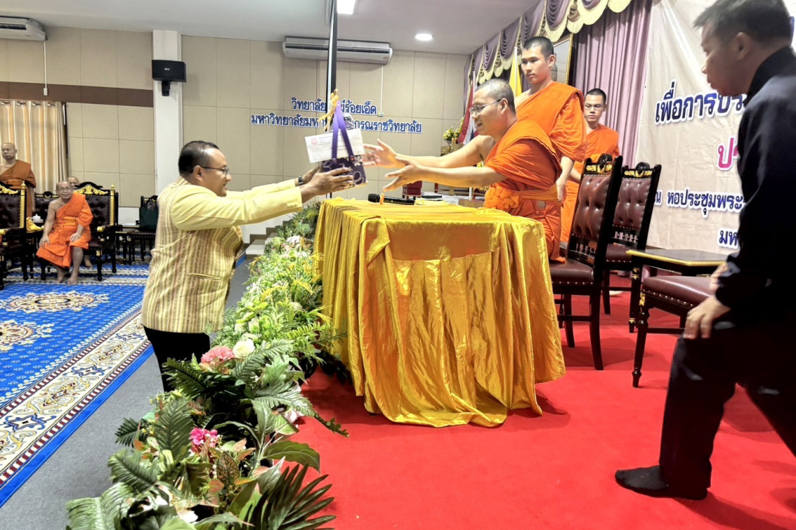 วันที่ 24 มิถุนายน 2568 เวลา 11.15 น. นายชัชวาลย์ เบญจสิริวงศ์ ผู้ว่าราชการจังหวัดร้อยเอ็ด ร่วมบรรยายพิเศษ เรื่อง “งานราชการที่เกี่ยวข้องกับคณะสงฆ์” ในโครงการบริการวิชาการเพื่อการบริหารกิจการคณะสงฆ์จังหวัดร้อยเอ็ด ปีงบประมาณ 2568 โดยได้รับความเมตตาจาก พระเทพวชิรคุณาธาร เจ้าคณะจังหวัดร้อยเอ็ด เป็นประธานโครงการ พร้อมด้วย พระครูสุวรรณสรานุกิจ รองเจ้าคณะจังหวัดร้อยเอ็ด พระวัชรคุณบัณฑิต ผู้อำนวยการวิทยาลัยสงฆ์ร้อยเอ็ด มหาวิทยาลัยมหาจุฬาลงกรณราชวิทยาลัย เจ้าคณะพระสังฆาธิการ และพระเลขานุการ ในเขตปกครองคณะสงฆ์จังหวัดร้อยเอ็ด เข้าร่วม ณ วิทยาลัยสงฆ์ร้อยเอ็ด มหาวิทยาลัยมหาจุฬาลงกรณราชวิทยาลัย อำเภอธวัชบุรี