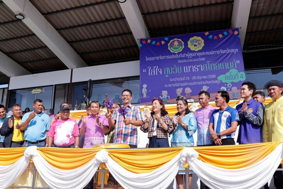 วันที่ 25 มิถุนายน 2568 ณ สนามกีฬาองค์การบริหารส่วนจังหวัดสตูล องค์การบริหารส่วนจังหวัดสตูล (อบจ.สตูล) จัดพิธีเปิดการแข่งขันกีฬาผู้สูงอายุและคนพิการ จังหวัดสตูล ประจำปีงบประมาณ พ.ศ. 2568 “ใส่ใจ สูงวัย พารา สโตยเกมส์” ครั้งที่ 4 โดยนายศักระ กปิลกาญจน์ ผู้ว่าราชการจังหวัดสตูล มอบหมายให้ นายคณิต คงช่วย รองผู้ว่าราชการจังหวัดสตูล เป็นประธานในพิธีเปิด พร้อมด้วยนายสัมฤทธ์ เลียงประสิทธิ์ นายกองค์การบริหารส่วนจังหวัดสตูล กล่าวรายงานถึงวัตถุประสงค์ของการจัดงาน