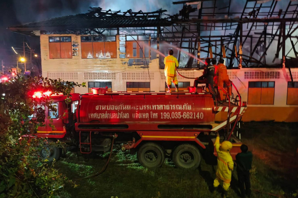 ไหม้วอดอาคารเรียนเก่าแก่กลางเมืองอ่างทอง เสียหายหลายล้านบาท คาดไฟฟ้าลัดวงจร