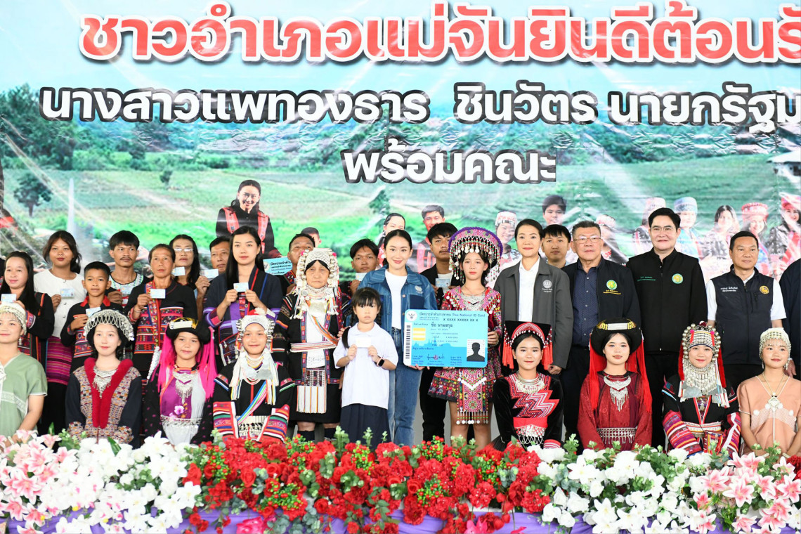 เมื่อเวลา 13.19 น.วันที่ 28 มิ.ย. ที่โรงเรียนแม่จันวิทยาคม ตำบลป่าซาง อำเภอแม่จัน จังหวัดเชียงราย นางสาวแพทองธาร ชินวัตร นายกรัฐมนตรี และคณะ เดินทางฝ่าฝนที่ตกกระหน่ำระหว่างทาง มาพบกลุ่มชาติพันธุ์ ที่ได้รับสัญชาติไทย และมอบบัตรประชาชนให้กับตัวแทนกลุ่มชาติพันธุ์ 21 คน นำโดย น.ส.ฝน โวยเจ่อ ชาวอาข่า อ.แม่จัน ซึ่งการมอบสัญชาติไทย เป็นไปตามมติ