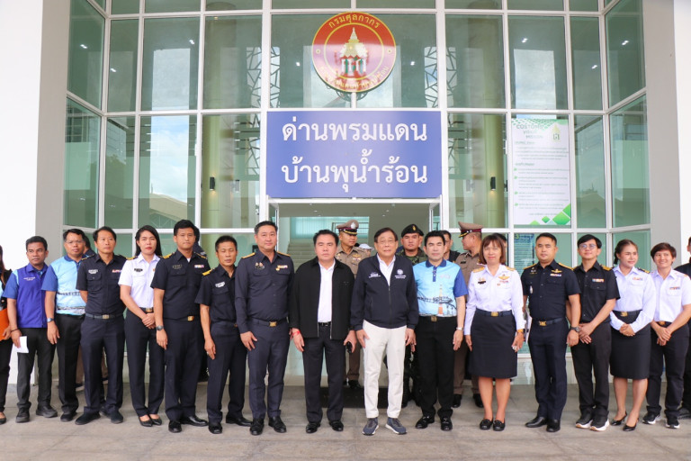 จากนั้นเวลา 11.50 น. นายพิชัย ชุณหวชิร รองนายกรัฐมนตรีและรัฐมนตรีว่าการกระทรวงการคลัง และคณะ ได้เดินทางมาตรวจเยี่ยม เจ้าหน้าที่ประจำจุดผ่านแดนถาวรบ้านพุน้ำร้อน ตำบลบ้านเก่า อำเภอเมืองกาญจนบุรี จังหวัดกาญจนบุรี โดยให้เพิ่มความเข้มงวดในการตรวจค้น ป้องกันการกระทำผิดกฎหมายทุกประเภท ถือปฏิบัติตามกฎหมาย ระเบียบ และคำสั่งที่เกี่ยวข้องอย่างเคร่งครัด และห้ามเจ้าหน้าที่ เกี่ยวข้องกับขบวนการขนคน ลักลอบเข้าเมือง การค้ามนุษย์ และยาเสพติดฯ