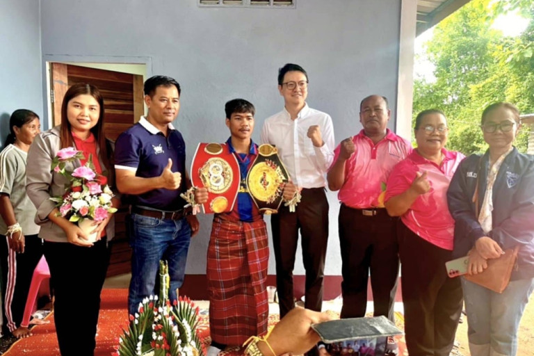 ชาวศรีสะเกษ แห่ต้อนรับ “เพชรโกศล กรีนสึดะ” แชมป์โลกสหพันธ์มวยนานาชาติ (IBF) รุ่นจูเนียร์ฟลายเวท 108 ปอนด์ คึกคัก