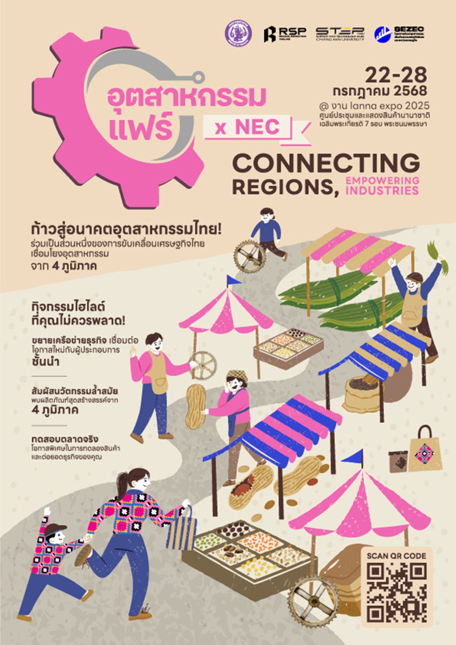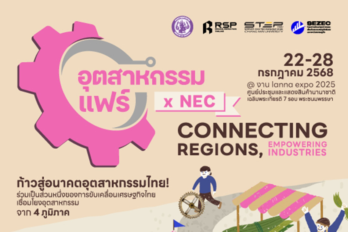 ขอเชิญผู้ประกอบการ นักลงทุน หน่วยงานภาครัฐและเอกชน รวมถึงประชาชนทั่วไปที่สนใจ เข้าร่วมสัมผัสนวัตกรรมสินค้าไทยจากทุกภูมิภาคได้ในงาน “อุตสาหกรรมแฟร์ X NEC” ระหว่างวันที่ 22 – 28 กรกฎาคม 2568 ณ ศูนย์ประชุมและแสดงสินค้านานาชาติเฉลิมพระเกียรติ 7 รอบ พระชนมพรรษา จังหวัดเชียงใหม่