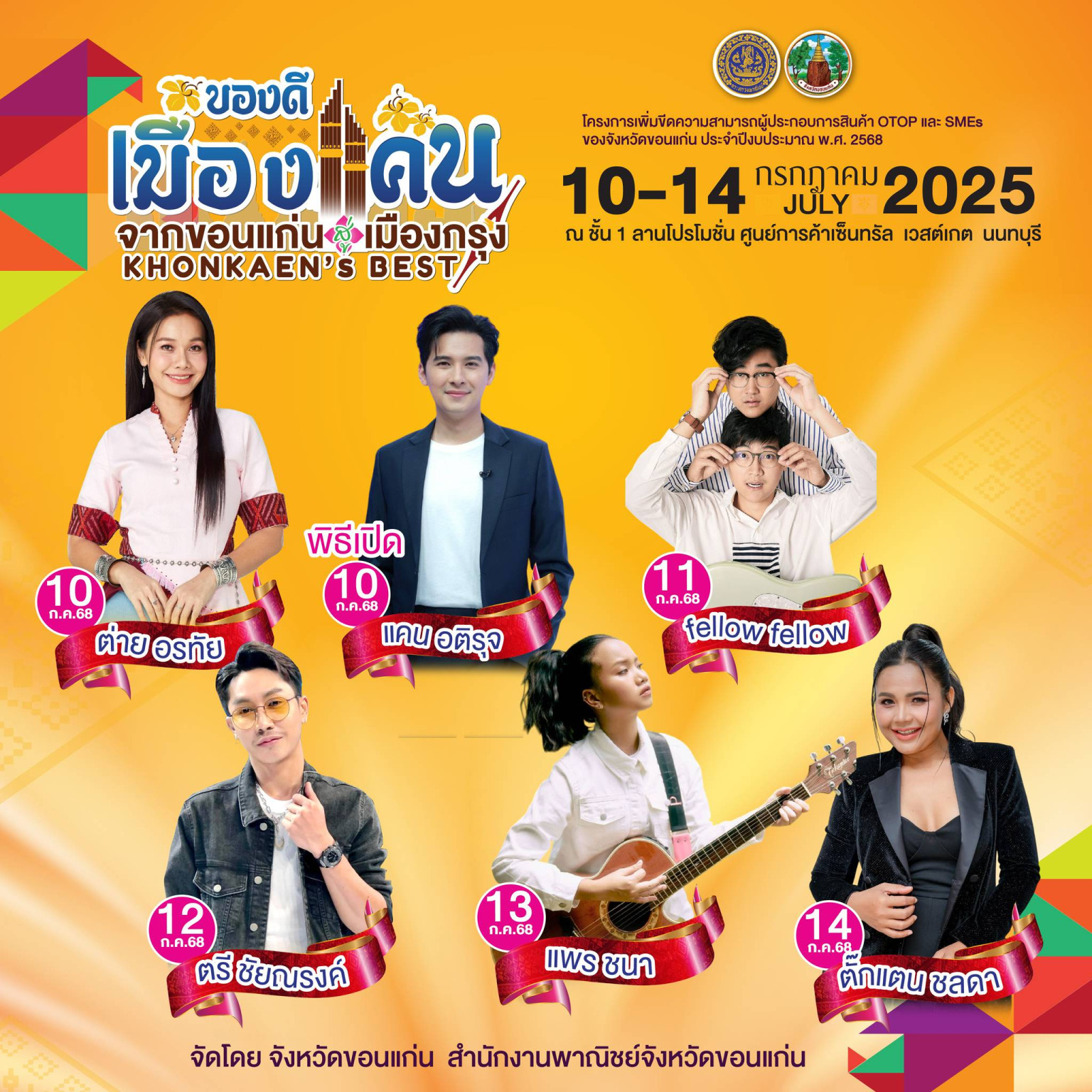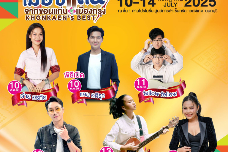 การแสดงแฟชั่นโชว์ ผ้าไหม GI ขอนแก่น ทุกวัน ม่วนซื่นไปกับการแสดงศิลปวัฒนธรรมอีสาน ทุกวันและศิลปินชื่อดัง ภายในงาน ได้แก่ วันที่ 10 กรกฎาคม 2568 ต่าย อรทัย, วันที่ 11 กรกฎาคม 2568 Fellow Fellow, วันที่ 12 กรกฎาคม 2568 ตรี ชัยณรงค์, วันที่ 13 กรกฎาคม 2568 แพร ชนา, วันที่ 14 กรกฎาคม 2568 ตั๊กแตน ชลดา