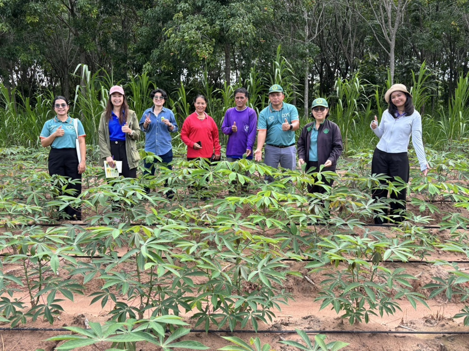 นายจักรกรี ธิมาชัย เกษตรอำเภอป่าติ้ว ร่วมลงพื้นที่ติดตามโครงการทดสอบและถ่ายทอดเทคโนโลยีเพื่อเพิ่มผลิตภาพการผลิตสินค้าเกษตร ปี 2568 กิจกรรมการทดสอบมันสำปะหลังพันธุ์ต้านทานและทนทานโรคใบด่างมันสำปะหลัง ร่วมกับเจ้าหน้าที่สำนักส่งเสริมและจัดการสินค้าเกษตร กรมส่งเสริมการเกษตร และ เจ้าหน้าที่สำนักงานเกษตรจังหวัดยโสธร ที่แปลงของ นายคณพศ อารีรักษ์ หมู่ที่ 7 ตำบลกระจาย อำเภอป่าติ้ว จังหวัดยโสธร พื้นที่ปลูกจำนวน 4 ไร่ และกิจกรรมแปลงมันสำปะหลังพันธุ์ดี จำนวน 2 แปลง