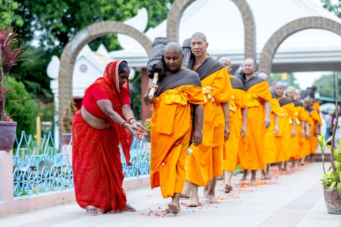 วัดพระธรรมกายจุดประกายศรัทธา บวชหมู่พุทธภูมิ 300 รูป เดินธรรมยาตราสู่สารนาถ ต้นกำเนิดพุทธศาสนา