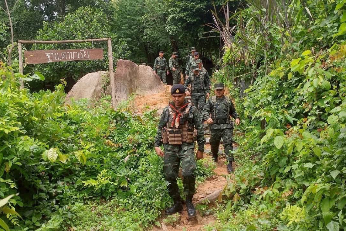 รองแม่ทัพภาคที่ 2 เดินเท้าลาดตระเวนชายแดนไทย-กัมพูชา ที่ศรีสะเกษ ให้กำลังใจ กำลังพล