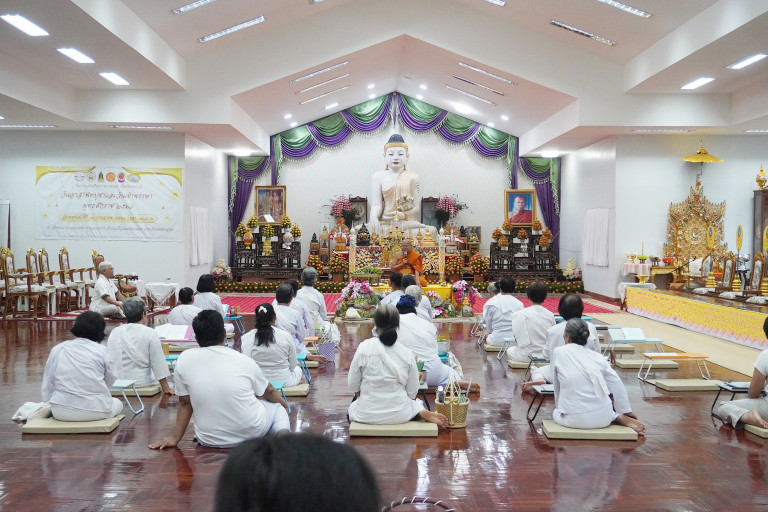 พิธีบวชเนกขัมมะปฏิบัติธรรม เพื่อถวายเป็นพุทธบูชา ธรรมบูชา สังฆบูชา และศึกษาพระธรรมคำสอนขององค์สมเด็จพระสัมมาสัมพุทธเจ้า โดยมีศรัทธาสาธุชน อุบาสก อุบาสิกา พ่อศีล แม่ศีล เข้าร่วมปฏิบัติธรรม จำนวน ๓๐ ท่าน