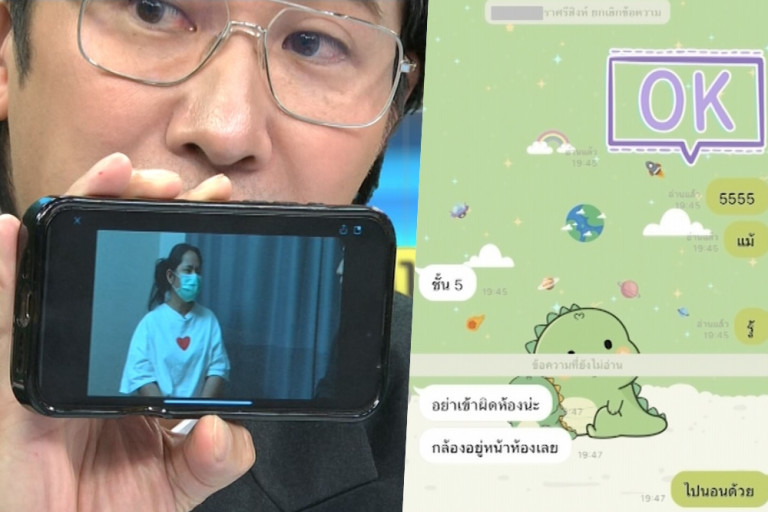 มีแชตไลน์ที่จะเปิดให้ดู ไม่ได้ยืนยันว่าเป็นของรูปไหน พระรูปนึงส่งข้อความหาสีกากอล์ฟ ให้สีกากอล์ฟไปบอกผู้ชายอีกคนที่คบหากับสีกากอล์ฟให้ยอมรับว่าเด็กคนนี้เป็นลูกของคุณ ไม่ใช่ลูกของผม ไม่งั้นพระรูปนี้จะโดนเล่นงาน ร่างแบบฟอร์มมาให้ให้สีกากอล์ฟไปจัดการ เอาง่ายๆ สีกากอล์ฟคบหาพระอยู่รูปนึง แล้วคบหาดร.อีกคนอยู่ เขาคบคู่กัน ปรากฏว่าสีกากอล์ฟตั้งครรภ์ พระไม่รู้ว่าเป็นลูกท่านหรือเปล่า เวลาผ่านไปมีคนมาเปิดเรื่องนี้ คบผู้หญิงที่สากเหล็ก สากเหล็กคือบ้านสีกากอล์ฟ พระรูปนี้ที่ส่งมาก็พยายามบอกให้ช่วยหน่อยเถอะ ให้สีกากอล์ฟไปบอกผัวตัวเองหน่อยว่าเด็กคนนี้เป็นลูก เขาก็ไม่ได้แน่ใจว่ายังไงกันแน่ มีข้อความอีกว่าเครื่องฟิต มองยังไง?