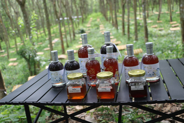 เลี้ยงชันโรงหลายสายพันธุ์ถูกนำมาในสวนยางที่ อ.สวนผึ้ง จ.ราชบุรีกว่า 600 รัง  นำมาแปรรูปเป็นน้ำผึ้งชันโรงใส่บรรจุภัณฑ์ที่สวยงาม อาชีพที่สร้างรายได้