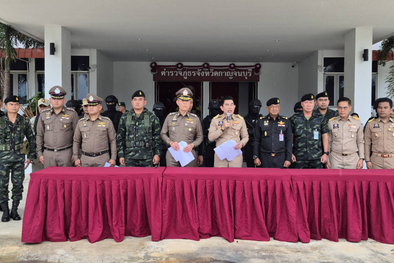กาญจนบุรี แถลงข่าวจับกุมบุคคลเครือข่ายยาเสพติดรายใหญ่