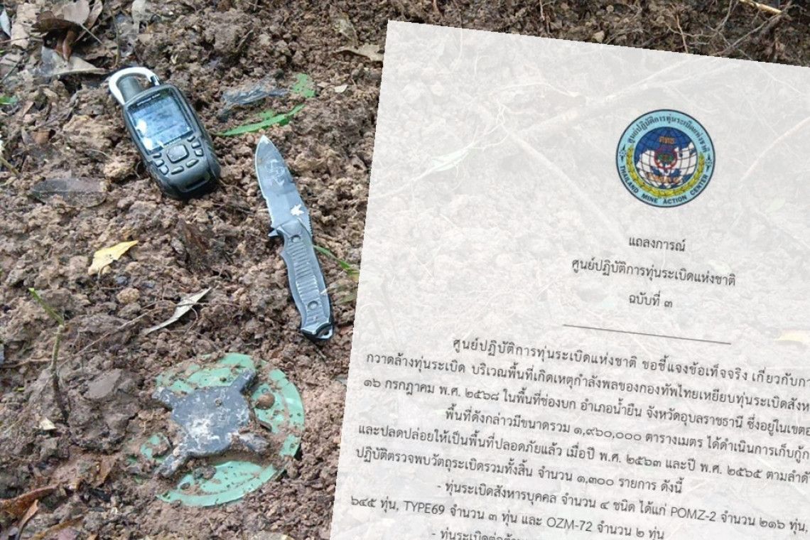 วันที่ 22 กรกฎาคม 2568 ศูนย์ปฏิบัติการทุ่นระเบิดแห่งชาติ ออกแถลงการณ์ ฉบับที่ 3 ระบุว่า ศูนย์ปฏิบัติการทุ่นระเบิดแห่งชาติ ขอชี้แจงข้อเท็จจริง เกี่ยวกับการดำเนินการเก็บกู้กวาดล้างทุ่นระเบิด บริเวณพื้นที่เกิดเหตุกำลังพลของกองทัพไทยเหยียบทุ่นระเบิดสังหารบุคคล เมื่อวันที่ 16 กรกฎาคม พ.ศ.2568 ในพื้นที่ช่องบก อำเภอน้ำยืน จังหวัดอุบลราชธานี ซึ่งอยู่ในเขตอธิบไตยไทย
