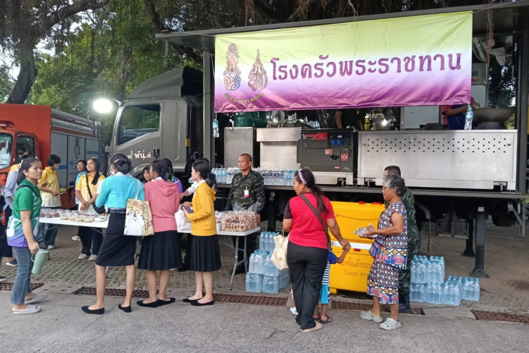 วันที่ 24 ก.ค.68 เพจ กองทัพภาคที่ 2 โพสต์ภาพพร้อมระบุข้อความว่า กองพันทหารราบที่ 3 กรมทหารราบที่ 23 ดำเนินการจัดตั้งโรงครัวพระราชทาน เพื่อสนับสนุนการประกอบอาหารพระราชทาน สำหรับแจกจ่ายให้กับประชาชน เพื่อบรรเทาความเดือดร้อน และเป็นขวัญกำลังใจให้แก่ประชาชนที่เคลื่อนย้ายออกจากพื้นที่เสี่ยงอันตรายใน ชายแดนไทย – กัมพูชา ณ ศูนย์พักพิงชั่วคราว มหาวิทยาลัยราชภัฏสุรินทร์