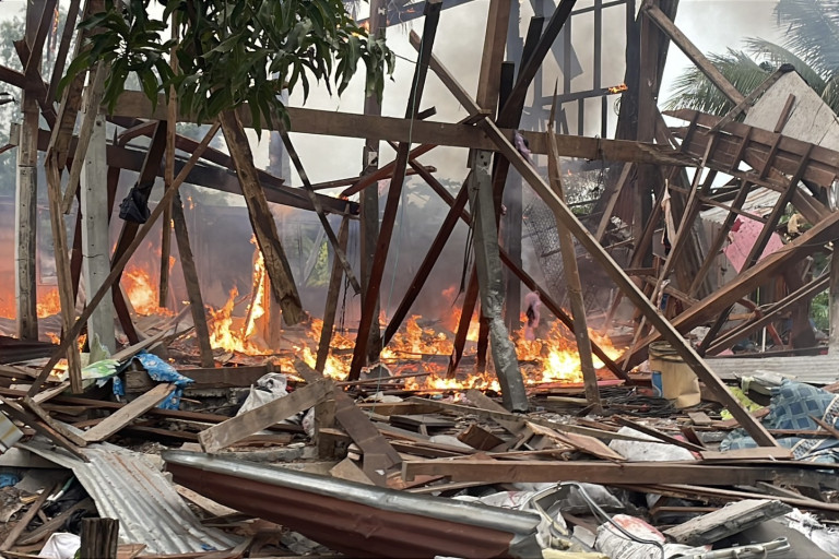 วันที่ 27 ก.ค.68 เวลาประมาณ 05.50 น.ทหารกัมพูชา ได้ยิงกระสุนปืนใหญ่นับสิบลูก เข้ามาในพื้นที่ อ.ปราสาท จ.สุรินทร์ โดยพบว่าลูกกระสุนปืนใหญ่ มาตกระเบิดที่หมู่บ้านแห่งหนึ่งในพื้นที่ ต.บ้านพลวง อ.ปราสาท จ.สุรินทร์ ซึ่งอยู่ห่างจากแนวชายแดนประมาณ 40 กิโลเมตร โดยลูกระเบิดตกใส่ข้างบ้านของนายคูณ พรหมนัดส์ อายุ 80 กว่าปี เสียงดังสนั่นหวั่นไหว ทำให้สะเก็ดระเบิดถูกตัวบ้านไม้สองชั้นเสียหายและไฟไม้ทั้งหลัง