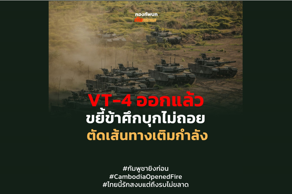 เมื่อวันที่ 27 ก.ค.68 เพจเฟซบุ๊ก "Army Military Force - สำรอง" โพสต์ข้อความ ระบุว่า  ด่วน! มีรายงานยืนยันว่า รถถัง VT-4 ของกองทัพบกไทย ได้เริ่มปฏิบัติการรบในเช้าวันนี้ (27 ก.ค.) โดยมีเป้าหมายเพื่อโจมตีผู้รุกรานและตัดเส้นทางส่งกำลังบำรุงของทหารกัมพูชา