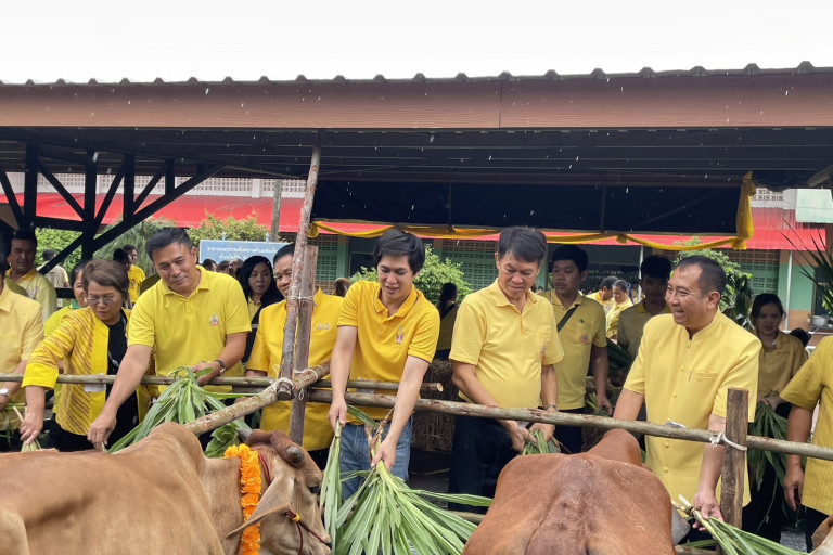 วันที่ 27 ก.ค. 2568 เวลา 10.00 น.ดร.เอกภาพ พลซื่อ โฆษกกระทรวงเกษตรและสหกรณ์ พร้อมด้วย นายเอกรัฐ พลซื่อ ประจำสำนักเลขาธิการนายกรัฐมนตรี เป็นประธานในพิธีมอบโค โครงการธนาคารโคกระบือ เพื่อเกษตรกรตามพระราชดำริ  จำนวน 50 ตัว โดยการดำเนินงานของ นายอำนาจ มะธิปิไข ปศุสัตว์จังหวัดร้อยเอ็ดและคณะหัวหน้าส่วนราชการในสังกัดกระทรวงเกษตรและสหกรณ์ จังหวัดร้อยเอ็ด ปศุสัตว์อำเภอโพธิ์ชัย หัวหน้าส่วนราชการระดับอำเภอ กำนัน-ผู้ใหญ่บ้าน และพี่น้องเกษตรกรอำเภอโพธิ์ชัย จ.ร้อยเอ็ด ณ เทศบาลตำบลเชียงใหม่ อำเภอโพธิ์ชัย จังหวัดร้อยเอ็ด