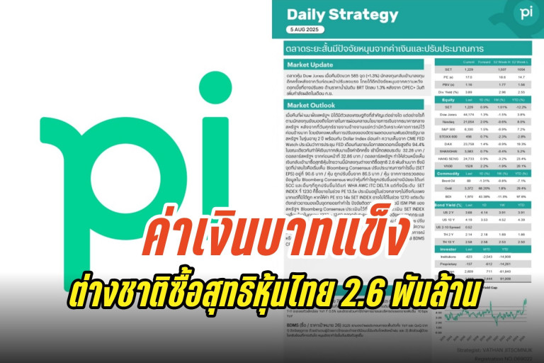แต่อย่างไรก็ตามตัวเลขข้างต้นก็อาจผันผวนได้ไปตามการรายงานตัวเลขเศรษฐกิจจากนี้ แต่ทั้งนี้ระยะสั้นด้วย Dollar Index กลับมาอ่อนค่าอาจเป็นปัจจัยสนับสนุนสกุลฝั่งเอเชียให้แข็งค่าและมีความหวังที่กระแสเงินจะไหลกลับมาระยะสั้น แต่ยังเชื่อว่านักลงทุนต่างชาติอาจยังไม่เข้าซื้อสุทธิหุ้นไทยด้วย Valuation เริ่มแพงผสานกับ Price In ปัจจัยบวกด้านการเจรจาไปแล้ว และแนวโน้มเศรษฐกิจไทยครึ่งปีหลังก็เริ่มดูไม่สดใสเพราะการส่งออกจะเริ่มย่ำแย่จากที่เร่งไปก่อนหน้า สอดคล้องกับในวันศุกร์ที่ผ่านมา SET INDEX เริ่มปรับฐาน -1.9% และนักลงทุนต่างชาติที่ซื้อสุทธิมาอย่างต่อเนื่องก็เริ่มเห็นการขายสุทธิออกมามากถึง 1.89 พันล้านบาท นับเป็นการขายสุทธิที่มากสุดในรอบ 25 วันทำการ