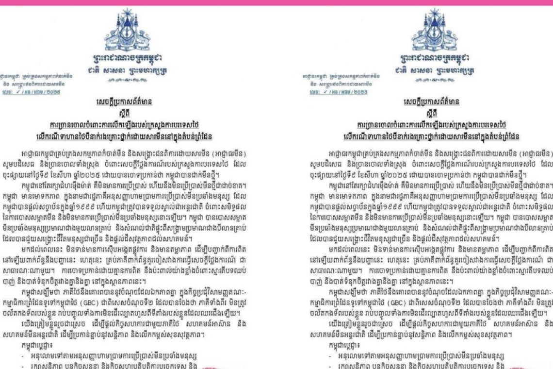 เมื่อวันที่ 9 สิงหาคม 2568 หน่วยงานจัดการทุ่นระเบิดและช่วยเหลือผู้พิการจากทุ่นระเบิดของกัมพูชา (หน่วยงานทุ่นระเบิด) ออกแถลงการณ์ปฏิเสธและคัดค้านอย่างเต็มที่ ต่อแถลงการณ์ของกระทรวงการต่างประเทศไทย ที่เผยแพร่เมื่อวันที่ 9 สิงหาคม 2568 ซึ่งกล่าวหาว่ากัมพูชาวางทุ่นระเบิดใหม่