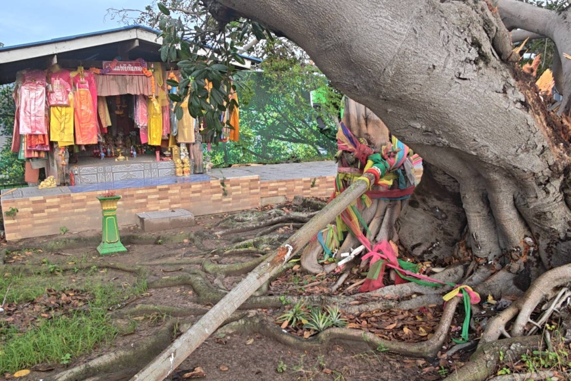 สำหรับต้นไม้ดังกล่าว เป็นต้นไม้เก่าแก่มีอายุหลายสิบปี มีขนาดใหญ่ตั้งอยู่คู่กับศาลเจ้าแม่ทับทิมทอง ซึ่งเป็นสถานที่ศักดิ์สิทธิ์ที่ชาวบ้านทั้งชาวไทยเชื้อสายจีนและคนในพื้นที่ เคารพนับถือและมากราบไหว้ขอพรเป็นประจำ