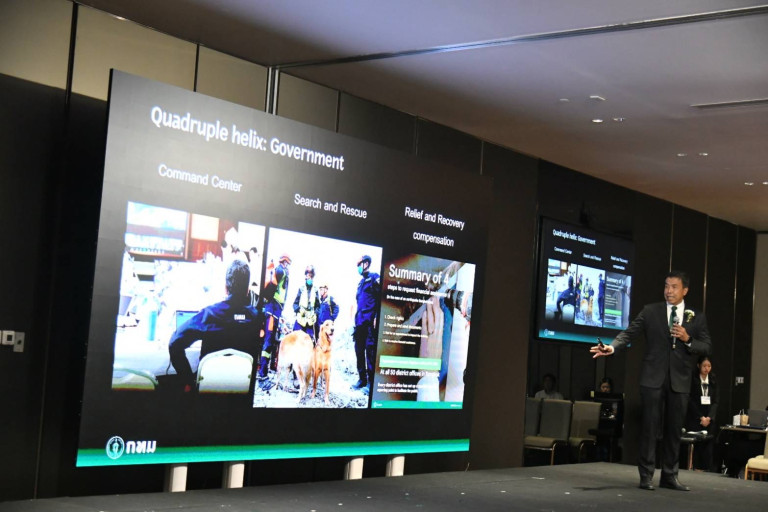 หัวใจของ Urban Resilience คือต้องเป็นการร่วมมือกันของ 4 ภาคส่วน ให้เป็นสปริงที่มีความยืดหยุ่น คือ 1. ภาครัฐ 2. ภาคสถาบันการศึกษา 3. ภาคอุตสาหกรรม และ 4. ภาคประชาชน ทั้ง 4 เกลียวเป็นตัวสำคัญทำให้เกิดความยืดหยุ่น ไม่มีทางที่ภาครัฐส่วนเดียวจะทำได้ ยกตัวอย่างเหตุการณ์แผ่นดินไหว ตึกถล่ม ที่กรุงเทพฯ ไม่เคยเจอ แต่เราแก้ปัญหาได้ด้วยการร่วมมือกันของหลายภาคส่วน