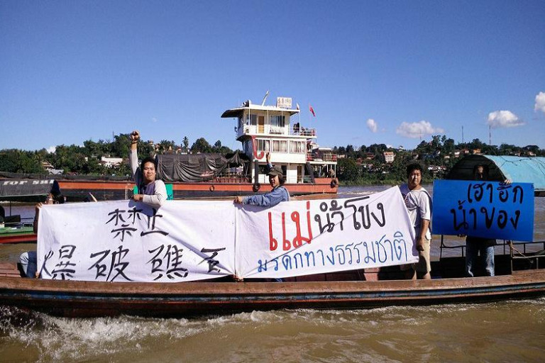 กลุ่มอนุรักษ์-เยาวชนเชียงของ ฮือไล่เรือจีนสำรวจระเบิดแก่งแม่น้ำโขง ชูป้ายคัดค้านฝากข้อความถึงรัฐบาลมังกร “ไกรศักดิ์”แนะรัฐทบทวนมติครม. หวั่นผลกรทบรุนแรง รองประธานหอการค้าเชียงรายข้องใจ ชี้ไม่ได้ประโยชน์แถมเรือเล็กเรือน้อยของชาวบ้านเสี่ยงไม่ปลอดภัย