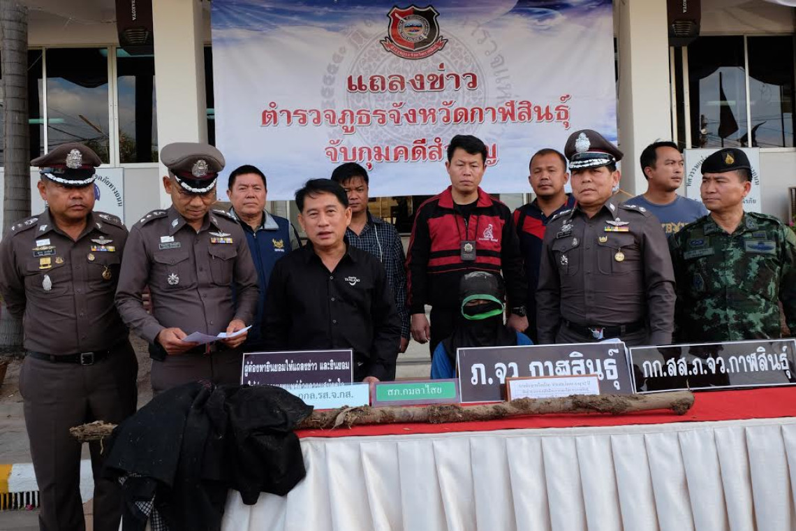 เมื่อเวลา 16.30 น. วันที่25 ม.ค.60 ที่หน้าอาคาร ภ.จว.กาฬสินธุ์ นายณัฐภัทร สุวรรณประทีป ผู้ว่าราชการจังหวัดกาฬสินธุ์, พล.ต.ต.มนตรี จรัลพงศ์ ผบก.ภ.จว.กาฬสินธุ์, พ.ต.อ.ทินณะรัตน์ เพ็ชรพันธ์ศรี รอง ผบก.ภ.จว.กาฬสินธุ์ พ.ต.อ.เสกสรร อินทร์สิทธิ์ ผกก.สืบสวน ฯ, พ.ต.อ.สุเทพ ชนะสิทธิ์ ผกก.สภ.กมลาไสย, พ.ต.อ.ชัยพร พงษ์ศักดิ์ ผกก.สภ.เมืองกาฬสินธุ์ พร้อมด้วย จนท.ตำรวจ กก.สืบสวน ฯ, สภ.กมลาไสย ชุดจับกุม บูรณาการร่วมกับ ฝ่ายทหาร พ.อ.ประวัติ จารุตัน เสธฯกกล.รส.กส. ร่วมกันแถลงข่าวการจับกุมผู้ต้องหานายจันทา หรือน้อย คำแสนโคตร อายุ 42 ปี ที่อยู่ 70 ม. 9 ต.หลักเมือง อ.กมลาไสย จ.กาฬสินธุ์ คดีฆ่าผู้อื่นโดยเจตนา