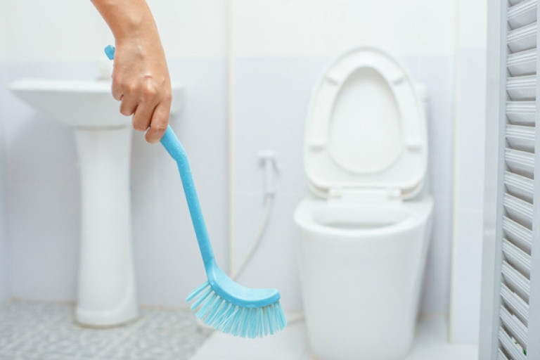 หลังจากทำความสะอาดห้องน้ำเสร็จเรียบร้อยแล้ว ก็อย่าลืมทำความสะอาดแปรงขัดห้องน้ำกันด้วย นอกจากจะใช้น้ำเปล่าและน้ำยาล้างคราบล้างออกแล้วยังไม่พอ ให้เทน้ำยาทำความสะอาดอเนกประสงค์ลงในฐานครอบแปรงด้วย แช่หัวแปรงเพื่อกำจัดสิ่งสกปรก ให้แปรงสะอาดพร้อมใช้งานในครั้งต่อไป