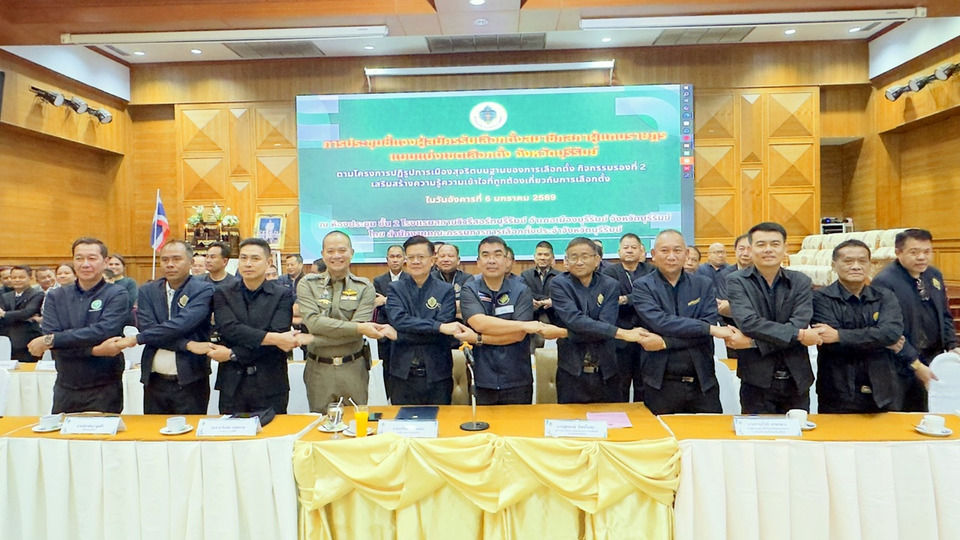 วันที่ 6 ม.ค.69 ที่โรงแรมสกายวิว ต.อิสาณ อ.เมือง จ.บุรีรัมย์ สำนักงานคณะกรรมการการเลือกตั้ง ได้จัดกิจกรรมรณรงค์การเลือกตั้งองค์การบริหารส่วนตำบล(อบต.)ที่จะมีขึ้นในวันที่ 11 ม.ค.69 นี้ พร้อมกับเชิญผู้สมัคร สส.และผู้สนับสนุนมารับฟังการชี้แจงแนวทางการหาเสียงเลือกตั้งอย่างถูกต้อง โดยมีนายเกรียงศักดิ์ สมจิต รองผู้ว่าราชการจังหวัด มาเป็นประธานในพิธี