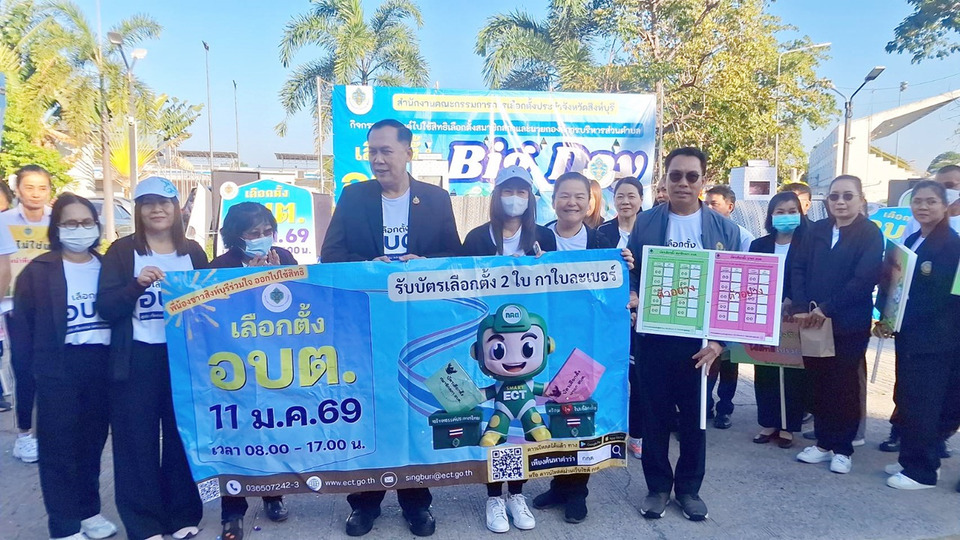 เมื่อเวลา 8.00 น. วันที่ 8 ม.ค.69 นายวราดิศร อ่อนนุชผู้ว่าราชการจังหวัดสิงห์บุรี เป็นประธานเปิดกิจกรรมโค้งสุดท้ายการเลือกตั้งสมาชิกสภาองค์การบริหารส่วนตำบล และนายกองค์การบริหารส่วนตำบล (Big Day) โดยมีนายคณาธิป แสงโคตร์ ผู้อำนวยการการเลือกตั้งประจำจังหวัดสิงห์บุรี พล.ต.ต.ชัยรพ จุณณวัตต์ ผู้บังคับการตำรวจภูธรจังหวัดสิงห์บุรี นายอำเภอ หัวหน้าส่วนราชการ ข้าราชการ พนักงานขององค์การบริหารส่วนตำบล ครู ประชาชน และเครือข่ายภาคประชาชน ร่วมกิจกรรมเป็นจำนวนมาก