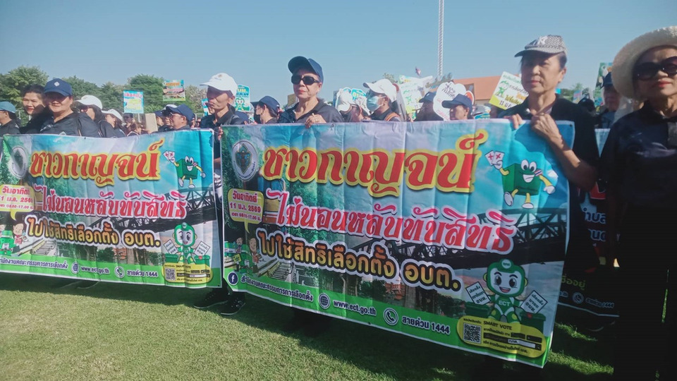 วันที่ 8 ม.ค.69 ที่สนามหญ้าองค์การบริหารส่วนตำบลเขาน้อย อำเภอท่าม่วง จังหวัดกาญจนบุรี นางพรรณวิภา ปิยัมปุตระ รองผู้ว่าราชการจังหวัดกาญจนบุรี ให้เกียรติเป็นประธานในพิธีเปิดกิจกรรมเดินรณรงค์ประชาสัมพันธ์การเลือกตั้งสมาชิกสภาองค์การบริหารส่วนตำบลและนายกองค์การบริหารส่วนตำบล (อบต.) ทั่วจังหวัด โดยมี นายสายชล ตันมันทอง ประธานศูนย์ส่งเสริมพัฒนาประชาธิปไตย (ศส.ปชต.) จังหวัดกาญจนบุรี เป็นผู้กล่าวรายงานถึงวัตถุประสงค์การจัดงาน